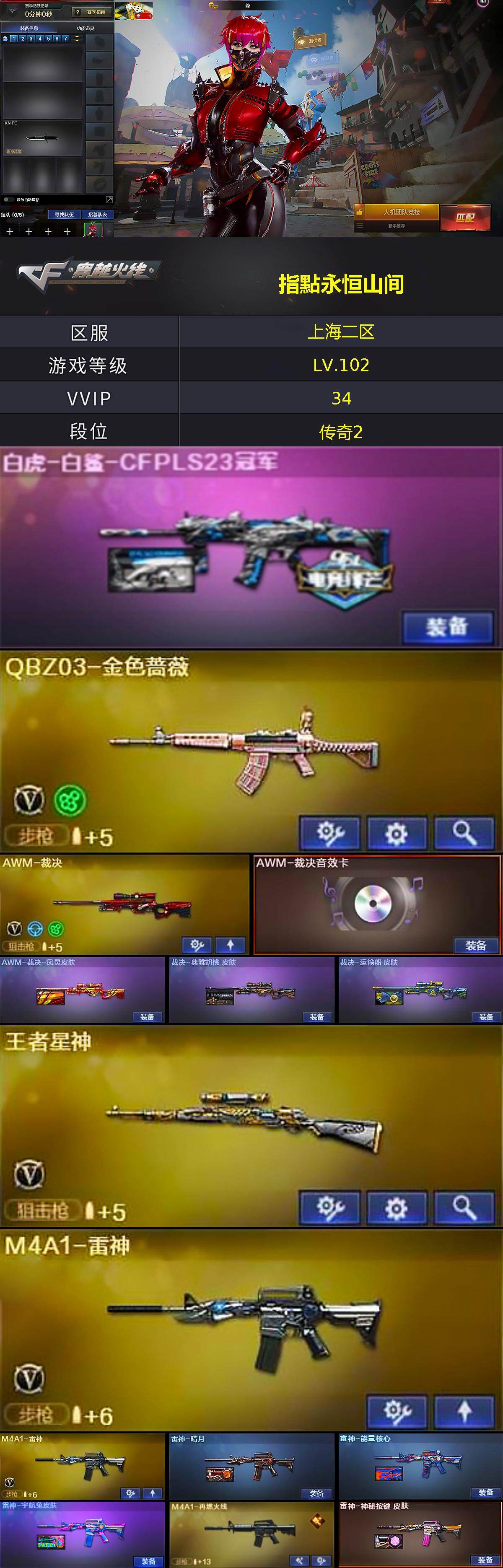 【1440】特26761东部上海二区可排位可二次【上海二区/31v/vip4】【附赠qq飞车安卓贵族9-32车皮/裁决三件套4皮肤/王者星神/q03-金色蔷薇】【awm-裁决/awm-裁决音效卡/裁决-胜者为王/凤灵皮肤/运输船/典雅胡桃】【q03-金色蔷薇/金色蔷薇-电竞之星】【hk417-朱雀-电竞之星】【m4a1-雷神2/雷神-宇航兔皮肤/雷神-暗月/雷神-能量核心】【barrett-毁灭/毁灭-荣耀之怒/毁灭-星空/毁灭-暗月3】【ak47-火麒麟2/火麒麟-cfstar2/火麒麟-白虎/火麒麟-雷神】【m4a1-黑骑士】【m4a1-黑龙/黑龙-能量核心】【黑武士-锦绣游龙】【awm-天龙/天龙-cfstar/天龙-秘银2/天龙-能量核心】【barrett-极光/极光-能量核心】【m4a1-千变-孔明皮肤】【加特林-炼狱】【死亡之眼2】【沙鹰-修罗/修罗-cfstar2/修罗-能量核心】【麒麟刺】【擎天】【屠龙/屠龙-春桃 皮肤】【龙啸】【隐/暗夜-x/兰-海滩派对/奇洋探员/云海玲珑/乔伊教练/兔囡囡/雪莉杨/娟娟/潘多拉-x/影武者-x/铁骑荣耀/幻影/堕天使/复仇者】【m4a1-玫瑰精灵】【天启-暗月3】【an94-超新星】【colt1911-小故障/colt 1911-大黄蜂/新usp-呛王排位奖励2】【激光毁灭者iii-白马银呛/激光毁灭者iii】【王者之锋】【闪光丹-堕天神】【烟雾保护头盔/闪光护目镜/超级背包/炫彩背包/防弹头盔4/防弹衣4/c4工具钳4/手蕾包4/防化服3】截图展示段位不代表实际段位,如赛季更新等不/拒因素发生变化、时限道具不保证所剩时间。标题未写送点卷默认不送