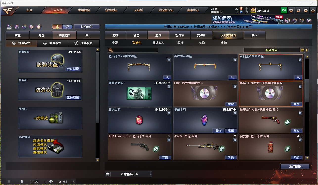 26v武器 可二次 可修改实名 【排位资格】:有 【v武器】:麒麟刺-百战金芒炼狱-百战金芒柯尔特-荣耀世冠白鲨2023机械迷城-穹宇m200-幻神白虎-电玩蓝兔传说光耀ak47-火麒麟m4a1-雷神m4a1-黑骑士barrett-毁灭awm-天龙awm-裁决ak12-天