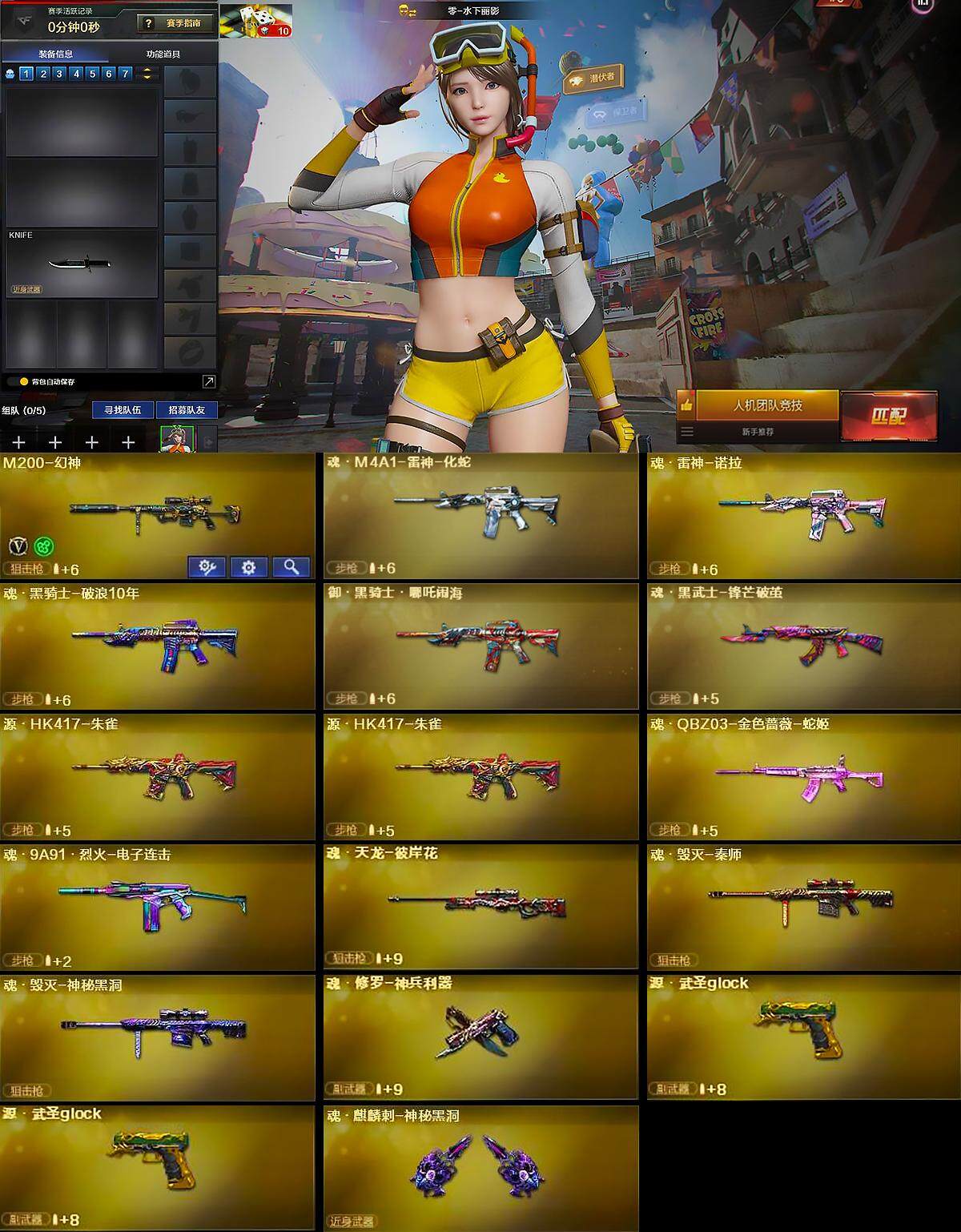 重庆一区-1v-0王者-0炫金 【热门武器】:m200-幻神 【角色】:零-水下丽影,潘多拉-x,游珑儿 【英雄级武器】:m200-幻神 【道具】:超级背包,绿色巨人,灵魂忍者,迷雾幽灵,夺命之镰,防化服2,星辰流光-呛王排位,呛王排位28赛季金色流光,呛王排位29赛季金色流光,防弹头盔2,防弹衣2,c4工具钳2,手蕾包2 【特殊呛械】: