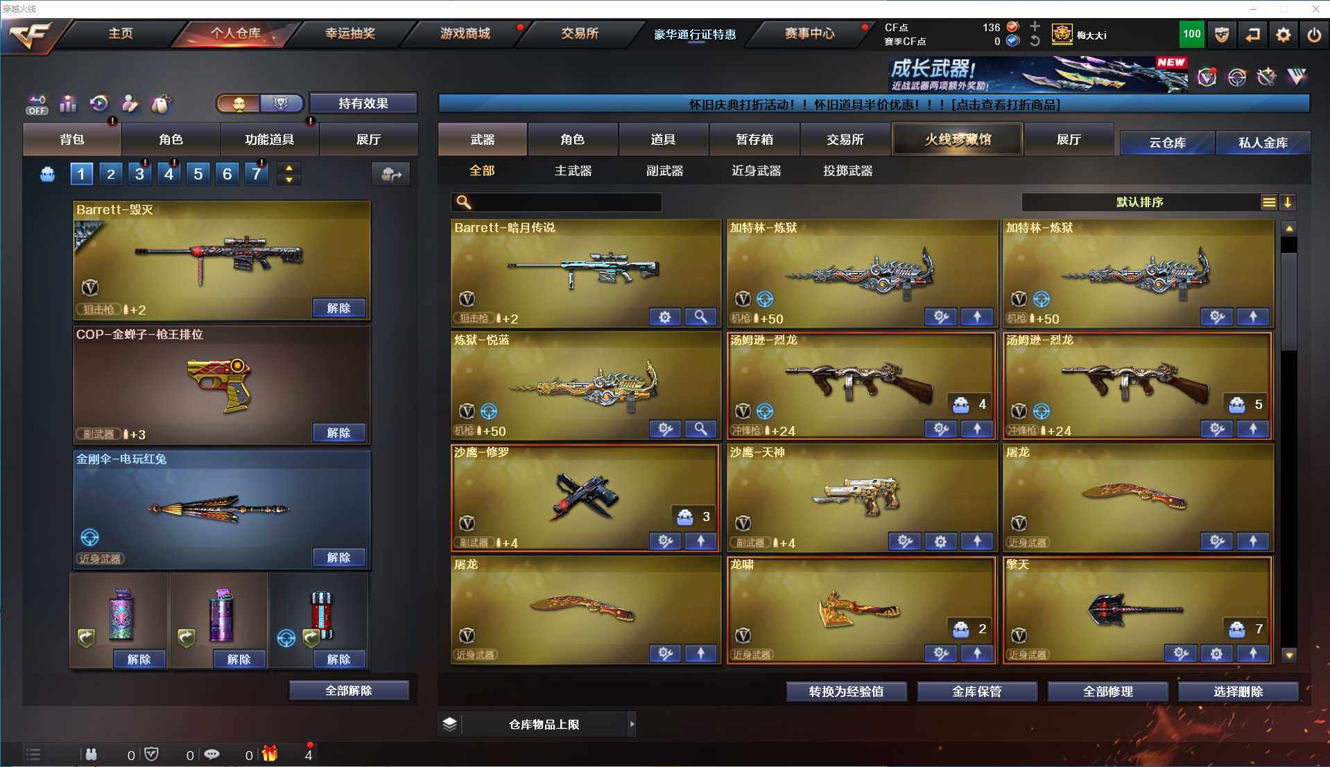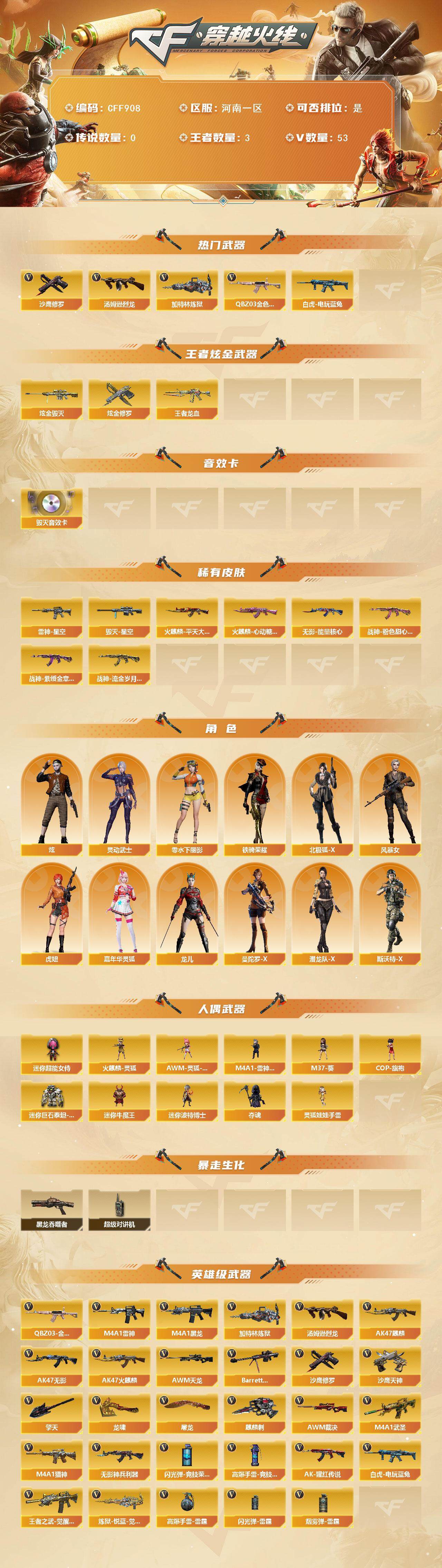 【cff908】52v/102级/荣耀元首/3王者/2炫金/1英雄/q03-金色蔷薇/白虎-电玩蓝兔/汤姆逊-烈龙/加特林-炼狱/沙鹰-修罗/王者龙血/炫金毁灭/炫金修罗/barrett-毁灭音效卡/雷神-星空/火麒麟-平天大圣/火麒麟-心动糖果/毁灭-星空/无影-能量核心/战神-粉色甜心皮肤/战神-紫绶金章皮肤/战神-流金岁月皮肤/炫/北极狐-x/风暴女/虎妞/嘉年华灵狐/灵动武士/零-水下丽影/龙儿/曼陀罗-x/潜龙队-x/斯沃特-x/铁骑荣耀/火麒麟-灵狐/m4a1-雷神-精英刀锋/awm-灵狐-15周年嘉年华/m37-葵/cop-旗袍/迷你牛魔王/迷你波特博士/夺魂/迷你超能女侍/迷你巨石泰坦-魔花研究所/灵狐娃娃手蕾/黑龙吞噬者/超级对讲机/ak47-火麒麟/ak47-麒麟/m4a1-黑龙/m4a1-雷神/ak47-无影/m4a1-武圣/无影-神兵利器/m4a1-猎神/王者之武-觉醒版/ak-47-猩红传说/awm-天龙/barrett-毁灭/awm-裁决/炼狱-悦蓝-觉醒版/沙鹰-天神/屠龙/龙啸/擎天/麒麟刺/高爆手蕾-雷霆/高爆手蕾-竞技荣光/闪光丹-雷霆/闪光丹-竞技荣光/盐雾蛋-雷霆/沙漠龙背包-猛男专属/炫彩背包/背包-洛丽塔/夺命之镰/防化服/金色流光-呛王排位/电玩兔兔表情/防弹头盔/防弹衣/c4工具钳/手蕾包