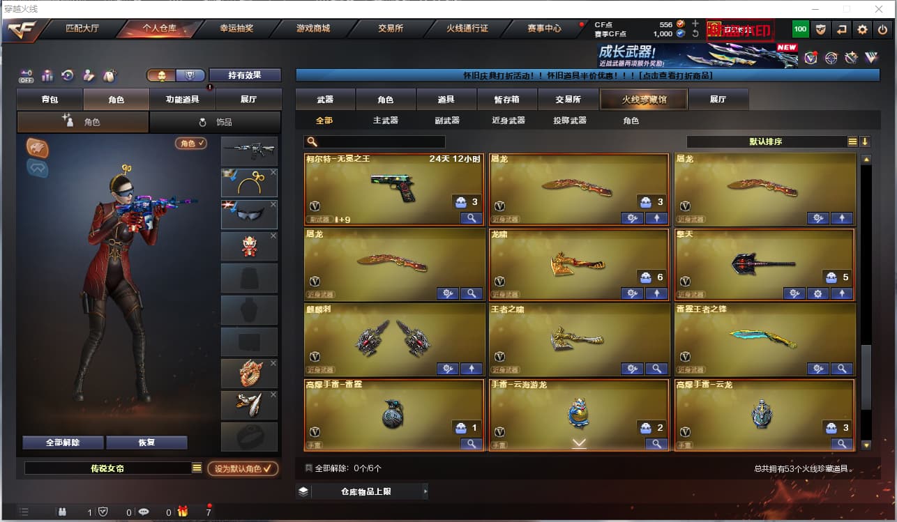 2279991-传说女帝 双色幻神三件套 双色裁决三件套 星神 3个四防角色 5个三件套)cf南部/湖南二区/51v/传说女帝(四防)/幻神 周瑜 荣耀世冠ep 幻神音效卡/星神/裁决 巅峰荣耀 羽掣 裁决音效卡/3烈龙/usp雷暴 柯尔特-荣耀世冠白鲨2023 cop白鲨/雷神三件套 毁灭三件套 火麒麟三件套/超能女侍觉(四防)/灵狐者职业经理(四防)/多皮可排