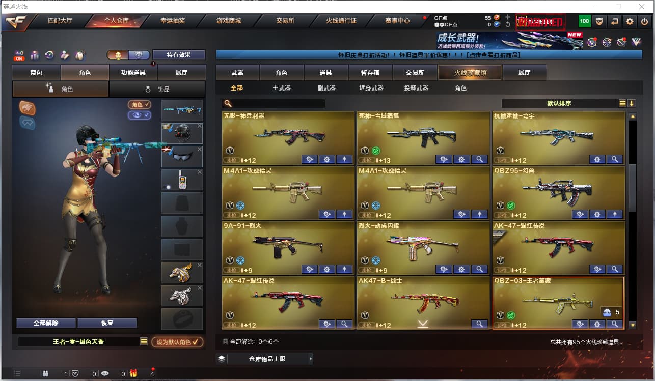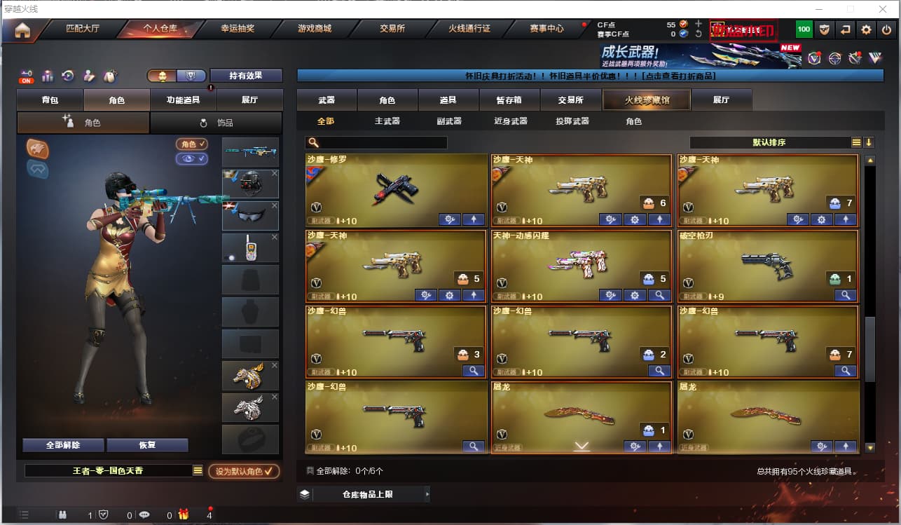 2281774-f西部/四川1区/95v/幻兽套 4把副手呛/6烈 死亡之眼/5盘2炼狱/破空呛刃/裁决 异化之源皮/q王者蔷薇/王者风势/千变/火麒麟/黑龙/雷神 原计划皮/黑骑士/黑武士/死神/武圣/机械迷城/玫瑰精灵/烈火/毁灭/天龙/极光/屠龙/龙啸/擎天/麒麟刺/王者零国色天香(四防)/可排