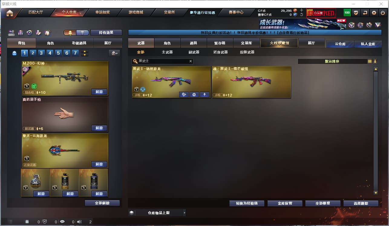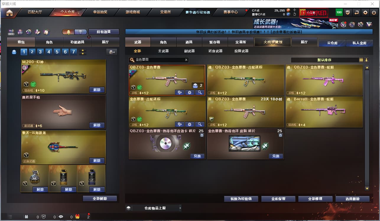 2282666-双色幻神 q金色蔷薇白鲨皮)(自带2.9w点卷)cf东部/江苏1区/24v/m200幻神 宠儿皮 n92022皮/q金色蔷薇 荣耀世冠白鲨皮/雷神 原计划皮 宇航兔皮/龙啸 纸灯龙皮/黑武士/极光/修罗2/可排