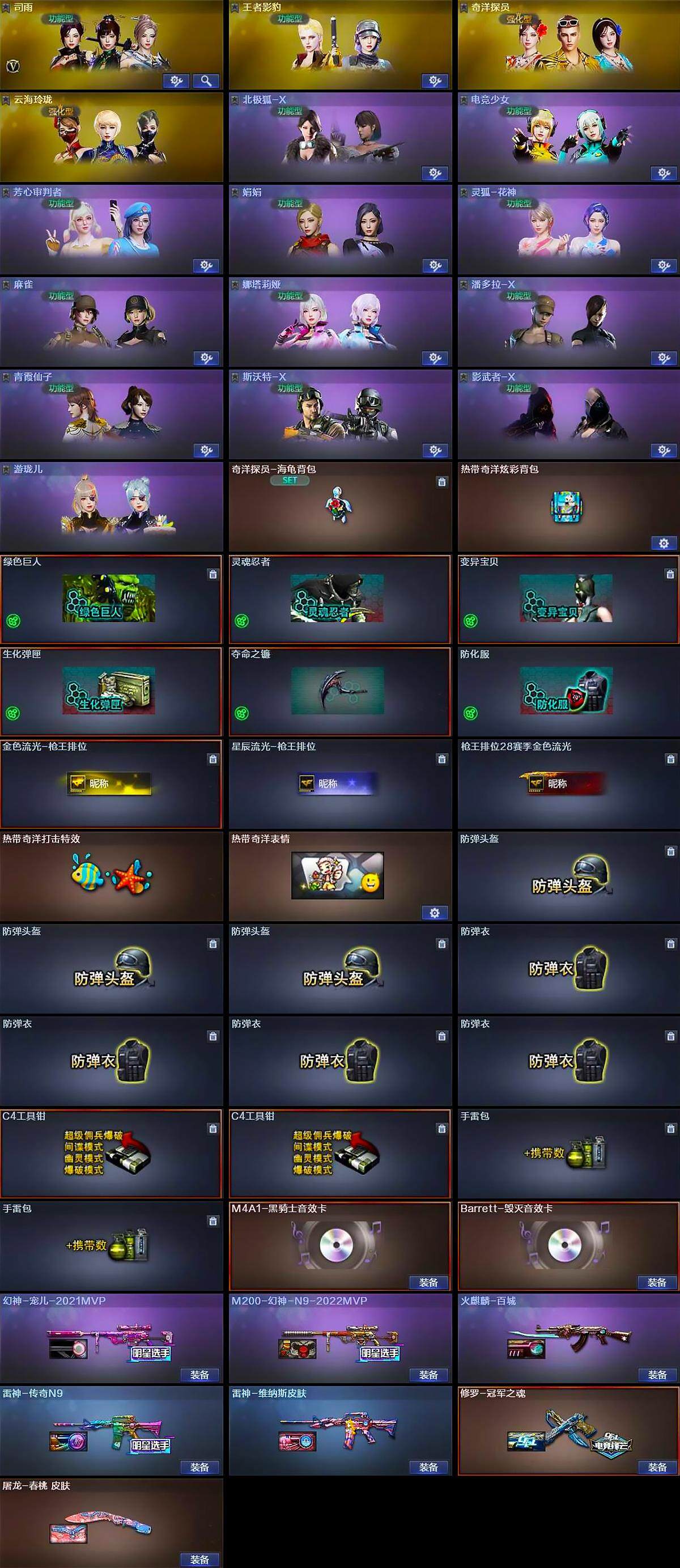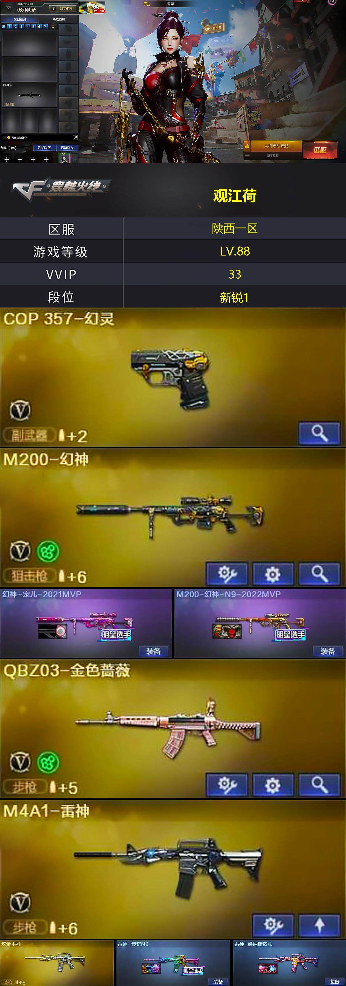[14673767]陕西一区-30v-7王者-3炫金 【热门武器】:q03-金色蔷薇,m14ebr-玄武,hk417-朱雀,m4a1-青龙2,m200-幻神,青龙之魄,c.a.t,m4a1-黑骑士,雷神-小红,cop 357-幻灵,沙鹰-修罗3 【王者炫金武器】:王者之城,青龙之魄,王者岩刺,炫金雷神,炫金毁灭,炫金天龙 【音效卡】:m4a1-黑骑士音效卡,barrett-毁灭音效卡 【皮肤】:幻神-宠儿-2021mvp,m200-幻神-n9-2022mvp,雷神-传奇n9,雷神-维纳斯皮肤,火麒麟-百城,修罗-冠军之魂,屠龙-春桃 皮肤 【角色】:司雨,王者影豹,奇洋探员,云海玲珑,北极狐-x,电竞少女,芳心审判者,娟娟,0号玩家,灵狐-花神,麻雀,娜塔莉娅,潘多拉-x,青霞仙子,斯沃特-x,兔囡囡,影武者-x,游珑儿 【人偶武器】:雷神-小红,c.a.t,迷你深渊冰龙,深渊终结者手蕾 【暴走生化】:超级对讲机 【英雄级武器】:ak47-火麒麟,m4a1-雷神,m4a1-黑骑士,an94-超新星,m4a1-青龙2,hk417-朱雀,m14ebr-玄武,黑武士-锦绣游龙,超新星-热带奇洋,q03-金色蔷薇,barrett-毁灭,m200-幻神,王者蔷薇-觉醒版,aa-12-雷霆,沙鹰-修罗3,cop 357-幻灵,屠龙,龙啸,麒麟刺,幻灵之锋,擎天-云海游龙,龙啸-热带奇洋,高爆手蕾-幻灵,手蕾-云海游龙,手蕾-热带奇洋,闪光丹-幻灵,闪光丹-雷霆王者-觉醒版,盐雾蛋-幻灵,盐雾蛋-云龙 【道具】:奇洋探员-海龟背包,热带奇洋炫彩背包,绿色巨人,灵魂忍者,变异宝贝,生化弹匣,夺命之镰,防化服,金色流光-呛王排位,星辰流光-呛王排位,呛王排位28赛季金色流光,热带奇洋打击特效,热带奇洋表情,防弹头盔3,防弹衣4,c4工具钳2,手蕾包2 【特殊呛械】:1黑骑士