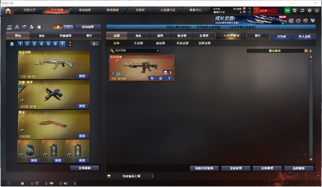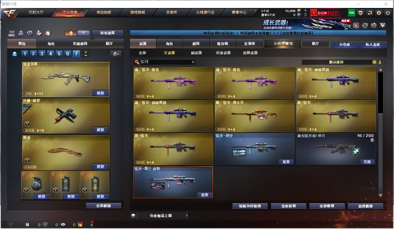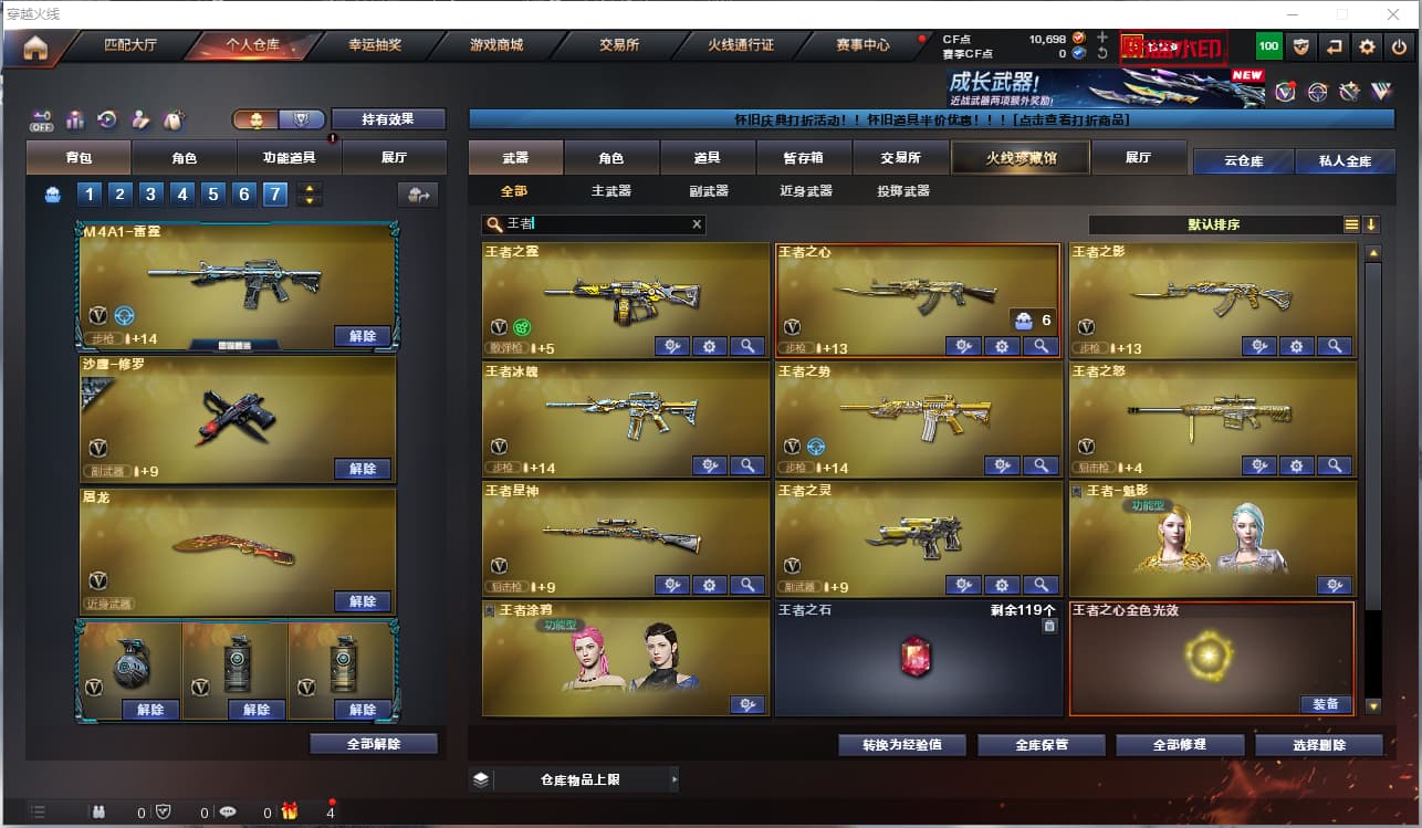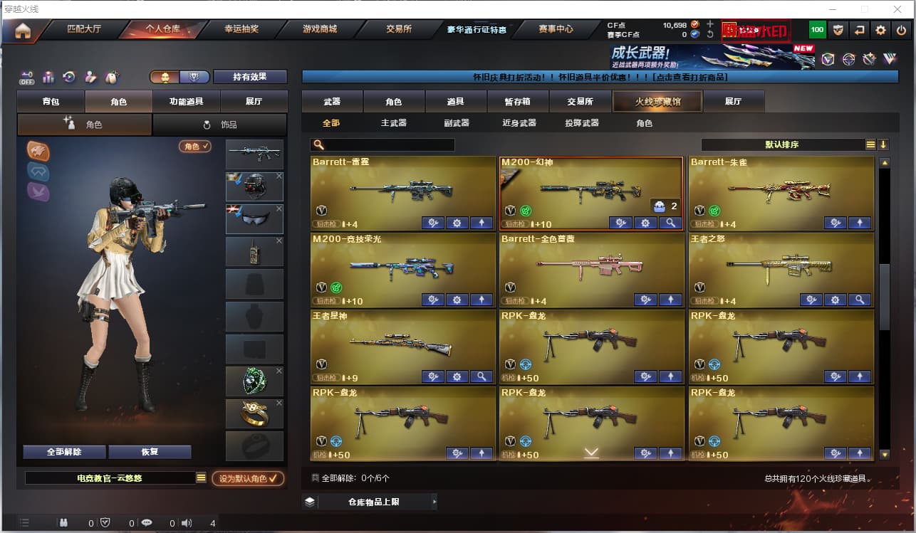 2296127-双传说 m200幻神 6盘6烈 蝴蝶 星神 白虎换色 雷霆套)cf西部/四川1区/120v/传说梦魇/传说暗裔/m200幻神 黄忠皮/雷霆套/m200竞技荣光套/6盘 6烈 蝴蝶/usp雷暴/王者星神/白虎 大汉风骨皮/青龙/白虎之魄/裁决/极光/天龙/毁灭/q金色蔷薇/王者之影/王者之势/王者之心/王者冰魄/m4神工天巧/云悠悠 王者魅影 王者涂鸦全部四防/可排