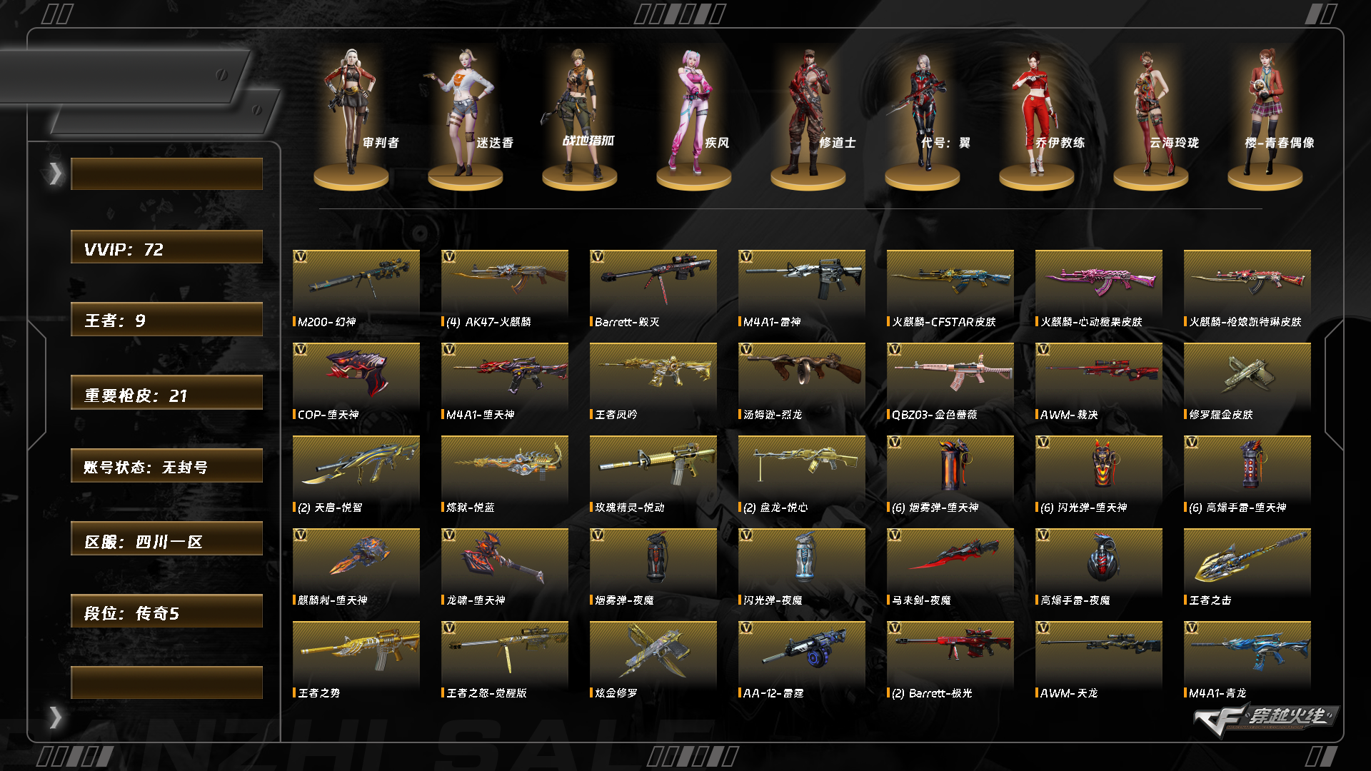 abc9369西部/四川一区/钱包注销/可排位/可二次/掌火id;/69v/幻神/幻神ag-s24冠军/q金色蔷薇/裁决/朱雀电竞之星/青龙/火麒麟/雷神/黑武士/黑龙/毁灭/王者之怒/火麒麟零纪元/王者凤吟/王者之势/【角色】审判者/修道士/【音效卡】/毁灭音效卡/火麒麟音效