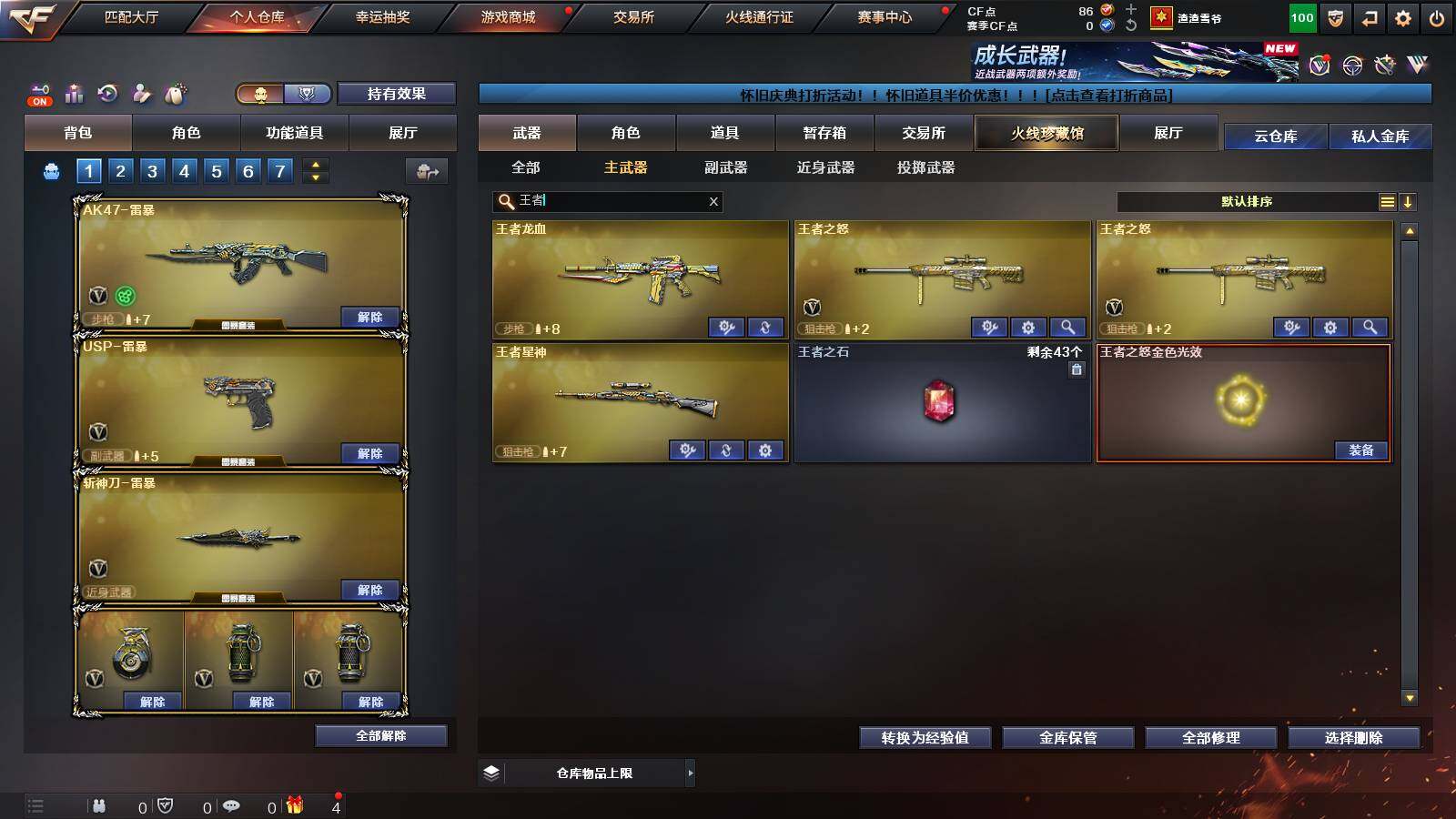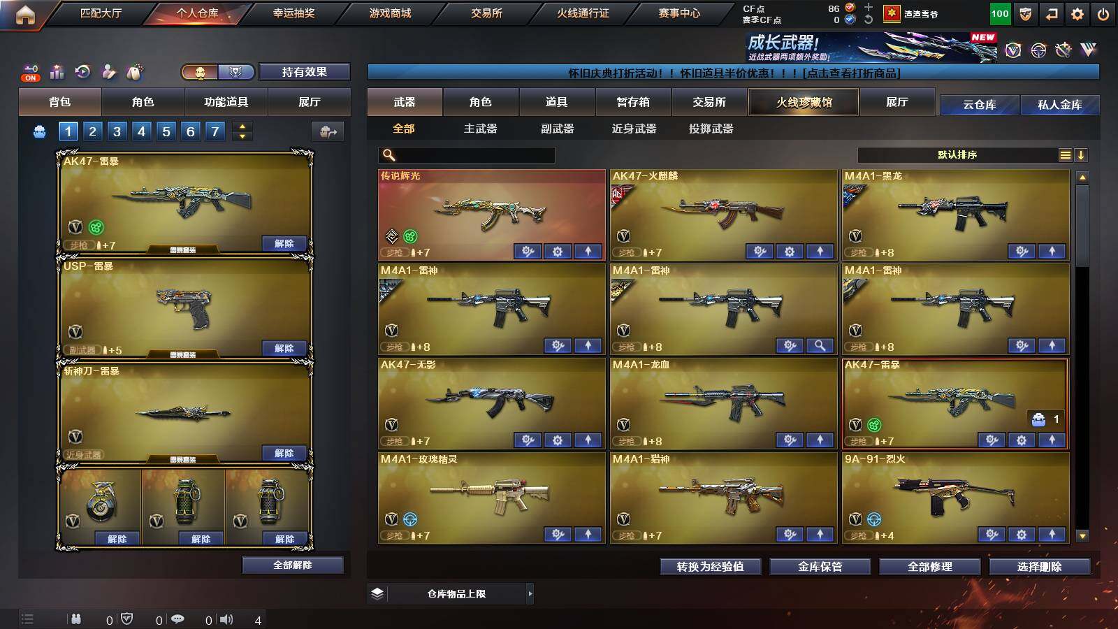 [14788523]【编号07754 可秒换绑】【店长推荐极品中的极品!爆破生化双修神号!传说辉光雷暴套7套雷6烈6盘斯泰尔蝴蝶!!!!!】 广东一区-72v-4王者-5炫金 【传说武器】:传说辉光 【热门武器】:传说辉光,王者星神,死亡之眼2,汤姆逊-烈龙6,rpk-盘龙6,加特林-炼狱,斯泰尔-蝴蝶,usp-雷暴,沙鹰-修罗2 【王者炫金武器】:王者龙血,王者星神,炫金千变,炫金雷神,炫金毁灭,炫金天神2 【音效卡】:barrett-毁灭音效卡 【皮肤】:雷神-能量核心,雷神-星空,雷神-虎将,雷神-耀金皮肤,毁灭-星空2,m4a1-黑龙-361,修罗-能量核心,天神-暗月 【角色】:零,魅影,春,北极狐-x,兰-海滩派对,灵狐者-职业经理,潘多拉-x 【人偶武器】:m4a1-雷神-精英刀锋,斯泰尔-蝴蝶,迷你生化手蕾 【暴走生化】:死亡之眼2,超级对讲机 【挑战大师】:神圣爆裂者iii,激光毁灭者iii 【英雄级武器】:ak47-火麒麟,m4a1-黑龙,m4a1-雷神3,ak47-无影,m4a1-龙血,ak47-雷暴,m4a1-玫瑰精灵,m4a1-猎神,awm-天龙2,barrett-毁灭2,barrett-极光,awm-裁决,王者之怒-觉醒版2,rpk-盘龙6,加特林-炼狱,汤姆逊-烈龙6,aa-12-雷霆2,沙鹰-修罗2,沙鹰-天神4,usp-雷暴,屠龙2,龙啸4,擎天,麒麟刺,斩神刀-雷暴,高爆手蕾-雷暴7,闪光丹-雷暴7,盐雾蛋-雷暴7 【道具】:炫彩背包,超级背包,绿色巨人,灵魂忍者,变异宝贝,迷雾幽灵,生化弹匣,夺命之镰,防化服2,c4-红龙,防弹头盔3,防弹衣3,c4工具钳3,手蕾包3 【特殊呛械】:蝴蝶斯泰尔6烈龙,6烈龙,6盘龙,1炼狱,1蝴蝶斯泰尔