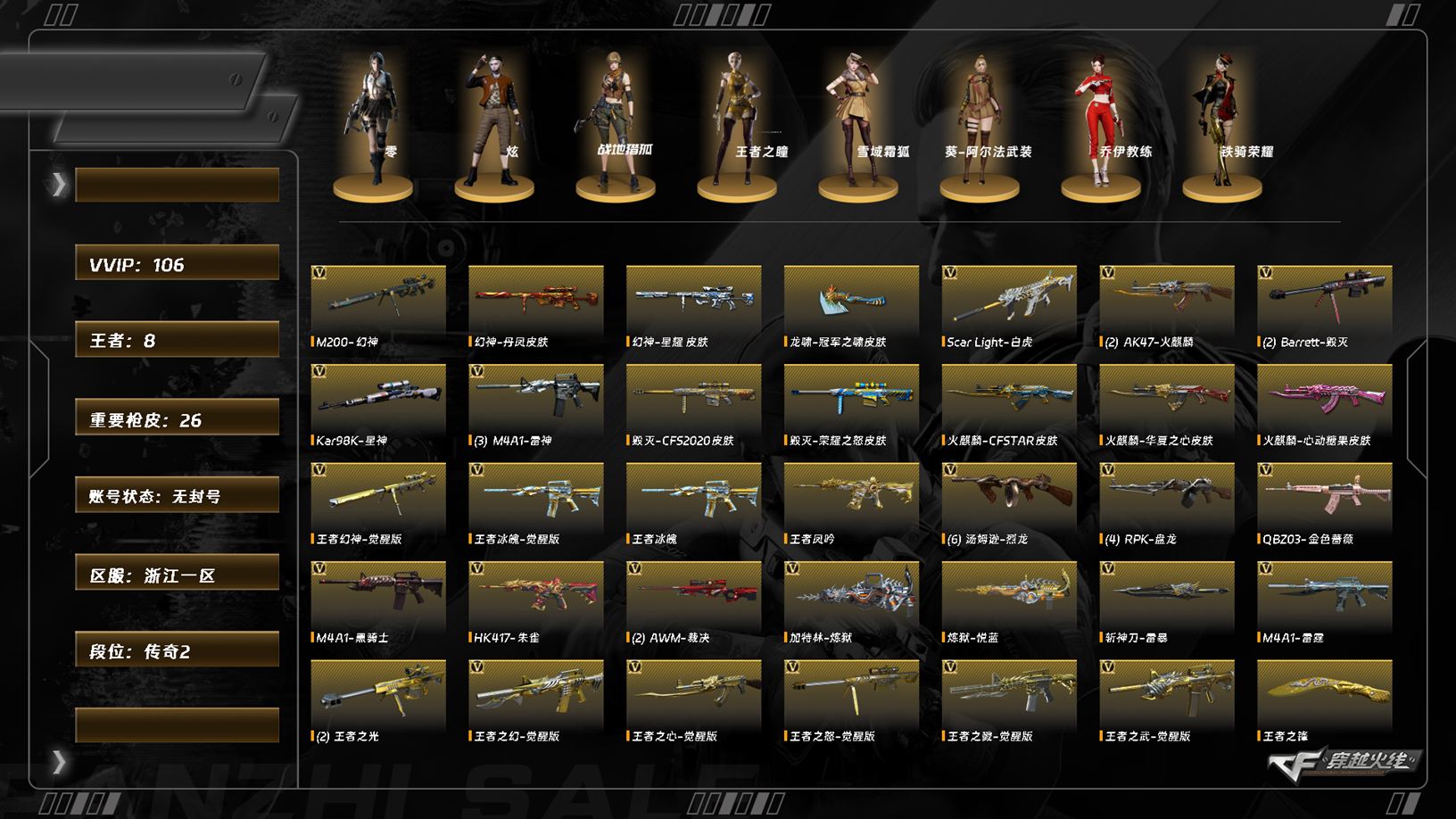 7672/东部/浙江一区/可排位/105v/幻神/幻神丹凤/幻神星耀/星神/星神黯钢战甲/6烈龙/4盘龙/王者幻神/觉醒版/白虎/白虎音效卡/q金色蔷薇/朱雀/【裁决三件套/裁决/裁决流光秘银/裁决音效卡/】/雷霆套装/cop雷霆/【角色】/零/炫/零纪元/战地猎狐/葵阿尔法武装/乔伊教练/