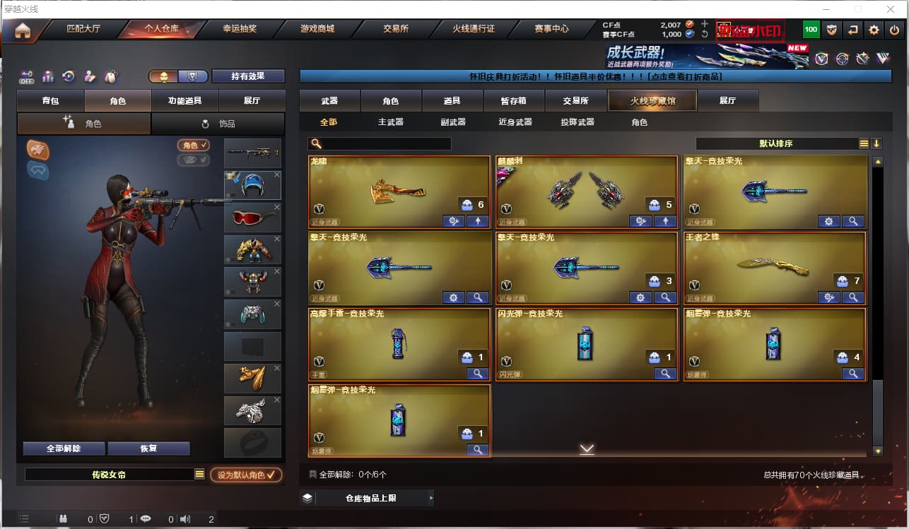 2320540-女帝 幻神 6盘6烈)cf西部/四川2区/70v/传说女帝/m200幻神/6盘6烈 死亡之眼/q金色蔷薇/烈火/玫瑰精灵/王者之魄/王者之势/极光/裁决/王者之力/屠龙/王者之峰/麒麟刺/火麒麟/无影/黑鲨/朱雀/毁灭 音效卡 耀金皮/黑骑士 音效卡/雷神 音效卡 冠军之魄/王者瞳/可排
