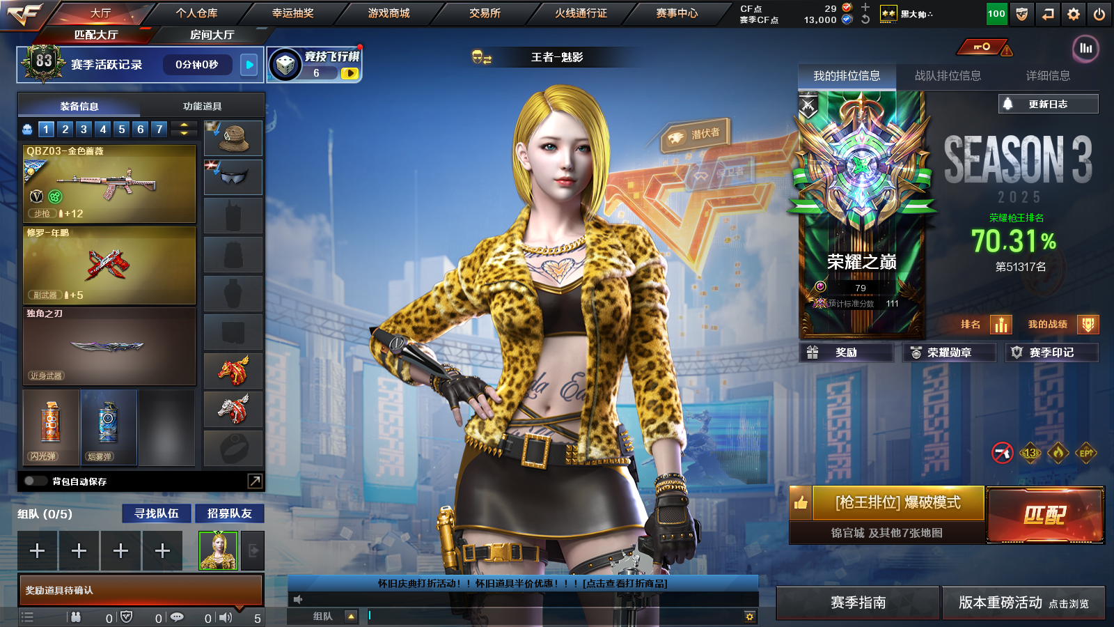 【区服】广东一区 【段位】荣耀呛王 【英雄角色】1 【英雄武器】22 【王者级武器】独角之刃 王者岩刺 【英雄级角色】幻面灵狐 葵-阿尔法武装 【英雄级武器】m4a1-雷神 hk417-朱雀-电竞之星 屠龙-电竞之星 盐雾蛋-荣耀世冠ep 柯尔特-荣耀世冠ep 盐雾蛋-荣耀世冠ep 柯尔特-荣耀世冠ep 盐雾蛋-荣耀世冠ep q03-金色蔷薇 barrett-碧霄极光 麒麟刺 九霄圣角 白虎-