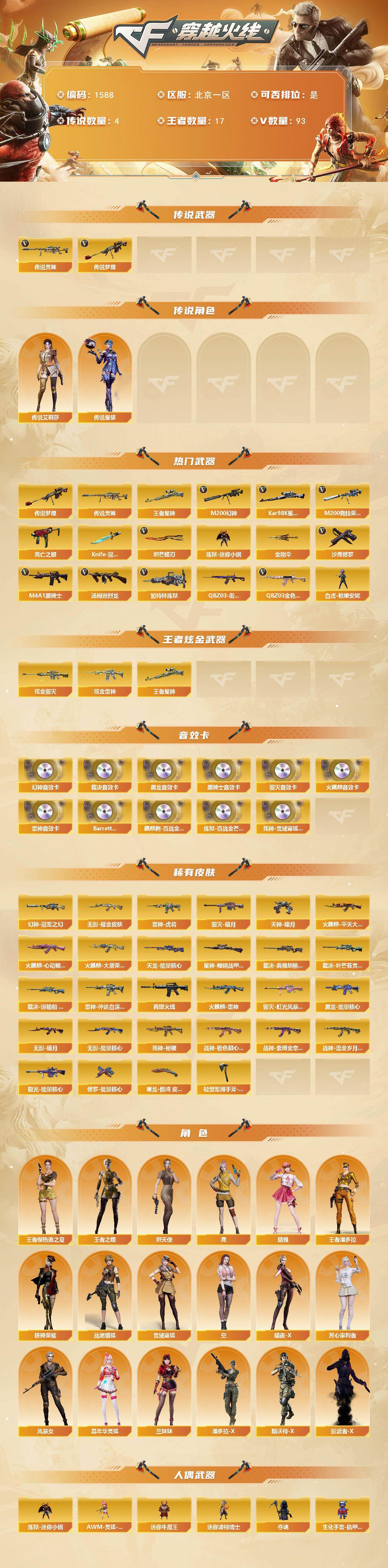 【1588】009特39096北部北京一区可排位可二次【北京一区/106v/vip6/4传说】【生化爆破全能/2传说角色/四防传说艾莉莎/传说星骇//传说梦魇/传说灵眸/幻神三件套/裁决三件套3皮肤/星神带皮肤/6烈龙5盘龙炼狱小刚/2把蝴蝶刀/冠军小刀/usp冥王/竞技荣光套/主流武器都带音效卡皮肤/ab拓展背包】【m200-幻神/m200-幻神音效卡/幻神-冠军之幻】【awm-裁决/awm-裁决音效卡/裁决-叶芒苍灵,皮肤/裁决-典雅胡桃,皮肤/裁决-运输船,皮肤】【kar98k-星神/星神-黯钢战甲,皮肤】【m200-竞技荣光】【王者星神/白虎之魄】【炽芒蝶刃2】【knife-冠军之刃】【王者冰锋】【丛林匕首-玄豹】【柯尔特-竞技荣光】【白虎呛娘安妮/王者芳薇/王者之势/王者之光/王者之锋】【q03-金色蔷薇】【q03-天罚】【鹰】【m4a1-雷神3/m4a1-雷神音效卡/雷神-虎将】【barrett-毁灭2/barrett-毁灭音效卡/毁灭-虹光风暴,皮肤/毁灭-暗月】【ak47-火麒麟3/ak47-火麒麟音效卡/火麒麟-cfstar2/火麒麟-大唐荣光/火麒麟-心动糖果/火麒麟-雷神/火麒麟-平天大圣】【m4a1-黑骑士2/m4a1-黑骑士音效卡】【m4a1-黑龙/黑龙-能量核心】【ak47-无影/无影-能量核心】【ak47-黑武士】【天龙-cfstar/天龙-能量核心2】【barrett-极光2/极光-能量核心】【m4a1-死神/死神-秘银/m4a1-千变】【汤姆逊-烈龙6】【加特林-炼狱2/炼狱-悦蓝】【死亡之眼】【沙鹰-修罗3/修罗-cfstar2/修罗-能量核心2】【沙鹰-天神】【麒麟刺】【擎天2/擎天-竞技荣光】【屠龙】【龙啸/龙啸-烈火龙威】【晴雅/王者潘多拉/王者樱-热浪之夏/暗夜-x/炽天使/木兰/潘多拉-x/斯沃特-x/救世主-x/影武者-x/铁骑荣耀/幻影/堕天使】【m4a1-龙血】【ak47-b-战士/ak47-b-战神/ak-47-猩红传说11】【aa-12-雷霆/ak47-机械迷城】【超新星-悦享】【colt1911-小故障/colt,1911-大黄蜂3/新usp-呛王排位奖励5】【斩魔刀/斩神刀/金刚伞】【神圣爆裂者-末日iii/激光毁灭者iii/冰龙粉碎者-白马银呛/征服者】【炼狱-迷你小钢】【猫猫手套/白虎-呛娘安妮/夺魂2】【高爆手蕾-竞技荣光2/闪光丹-竞技荣光2/盐雾蛋-竞技荣光2】【高爆手蕾-雷霆/闪光丹-雷霆/盐雾蛋-雷霆】【高爆手蕾-神工天巧/闪光丹-神工天巧/盐雾蛋-神工天巧2】【高爆手蕾-幻灵/盐雾蛋-幻灵】【炫金雷神/炫金毁灭】【烟雾保护头盔/闪光护目镜/超级背包/炫彩背包/防弹头盔4/防弹衣3/c4工具钳3/手蕾包3/防化服3】源武器多多皮肤多多底价处理机会难得手慢无 【稀有套装】:幻神三件套,裁决三件套