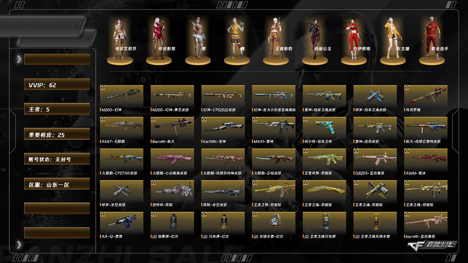 [14821100]lc7682/北部/山东一区/可排位/62v/3传说/【四防传说角色/传说艾莉莎/】/【三防传说角色/传说影煞/】/传说梦魇/幻神/幻神黄忠/幻神cfs2022/幻神星火小队签名臻藏版/星神/q金色蔷薇/qzbcfs2024/云龙套装/q云龙/cop云龙/白虎之魄/柯尔特无冕之王/柯尔特冠军之特/【四防角色/王者影豹/】/【角色】/樱/鹰/零纪元/乔伊教练/【音效卡/屠龙动感闪耀音效卡/黑骑士音效卡/火麒麟音效卡/】/【呛皮】/火麒麟呛娘凯萨林/毁灭呛娘格雷/屠龙星火燎原/火麒麟百城/白虎巅峰荣耀/死神机甲刑天/黑骑士电玩青兔/修罗星空/火麒麟心动糖果/王者武器/王者风势/王者之魄/王者之势/王者之魂/王者之锋/【小人呛/lck炽火炎龙/cop青花瓷斯沃特精英/】/永久ac/找回包赔
