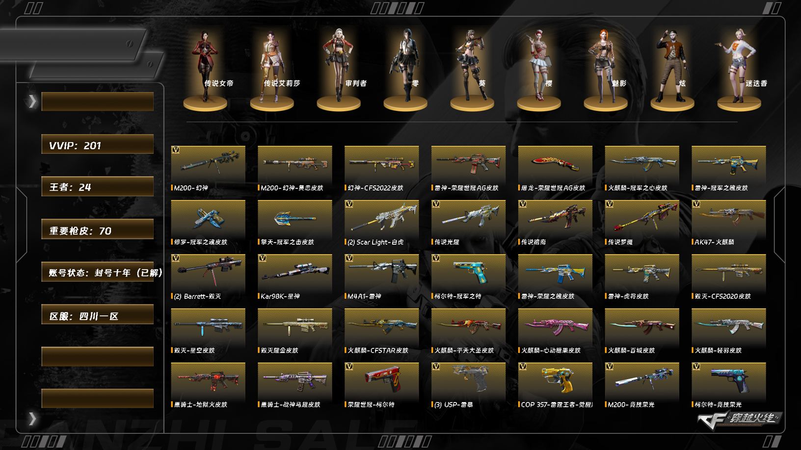 lc7346/西部/四川一区/可排位/靓号2030-05-06到期/200v/【/幻神三件套/幻神/幻神cfs2022/幻神黄忠/幻神agcfpls24冠军/幻神音效卡/】/【/四防传说角色/传说女帝/】/【三防传说角色/传说艾丽莎/】/传说光耀/传说暗裔/传说梦魇/星神/【/竞技荣光套/lc200