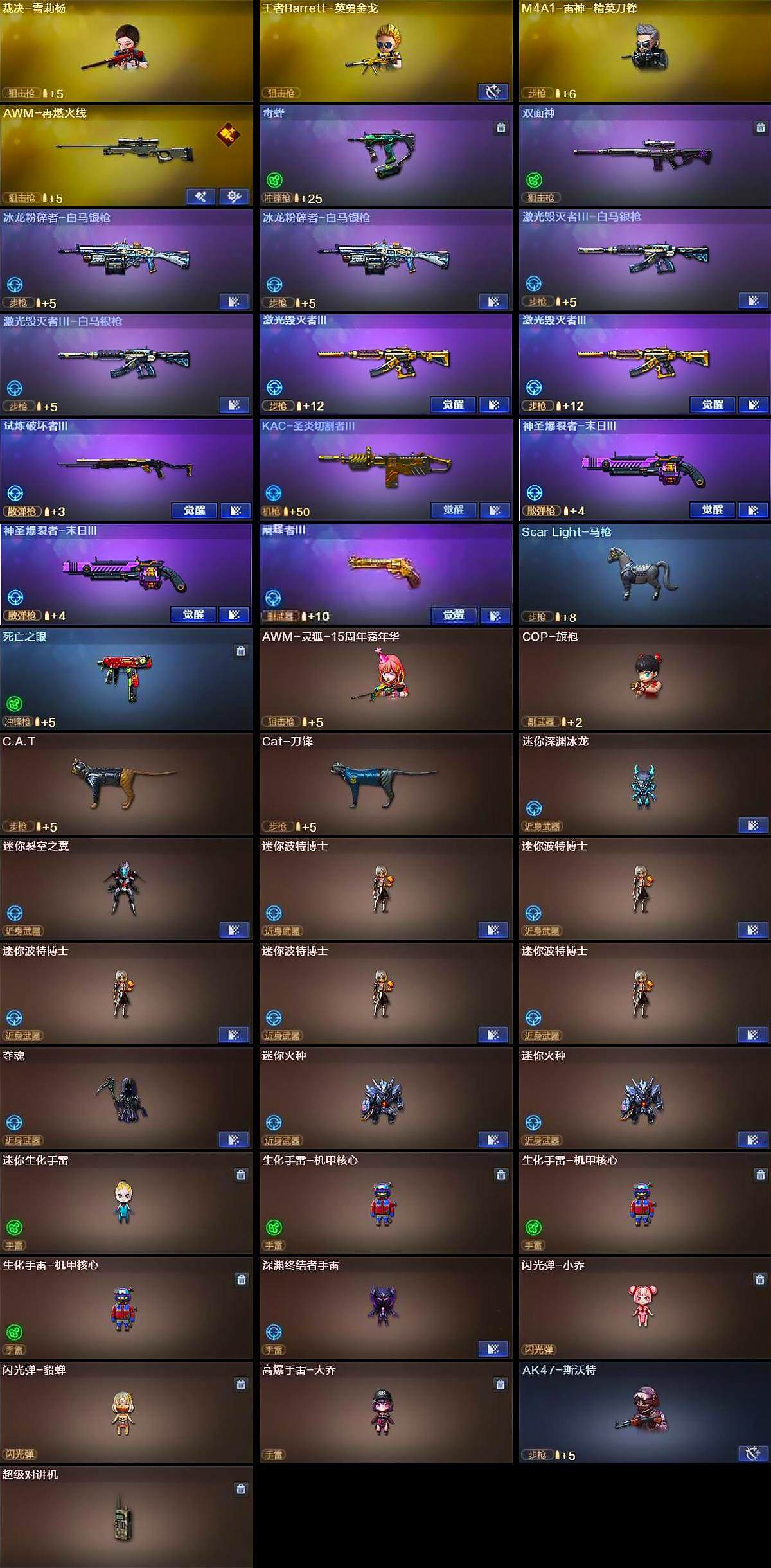 陕西一区-132v-22王者-8炫金 【热门武器】:传说幽冥2,q03-金色蔷薇2,scar light-白虎2,m200-幻神2,m200-竞技荣光2,死亡之眼2,c.a.t2,cat-刀锋2,毒蜂2,m4a1-黑骑士2,汤姆逊-烈龙12,rpk-盘龙12,加特林-炼狱2,裁决-雪莉杨4,cop-堕天神2,cop 357-雷霆王者2,沙鹰-修罗8 【王者炫金武器】:王者之翼2,王者火魄2,王者雷影2,炼狱-悦蓝2,cop 357-雷霆王者2,炫金黑龙4,炫金雷神4,炫金武士2,炫金超新星2,炫金毁灭2,炫金天龙2 【传说武器】:传说幽冥 【音效卡】:m200-幻神音效卡2,m4a1-黑骑士音效卡2,barrett-毁灭音效卡2,scar light-白虎音效卡2,barrett-碧霄极光音效卡2 【皮肤】:m200-幻神-黄忠皮肤2,幻神-降龙2,幻神-纸灯龙皮肤2,scar light-白虎-暗星2,雷神-荣耀之魄2,雷神-星空2,m4a1-战神赵云2,雷神-宠儿-2019mvp2,雷神-源计划2.0专属 皮肤2,雷神-神秘按键 皮肤2,火麒麟-战神关羽2,火麒麟-平天大圣2,火麒麟-盘古2,火麒麟-百城2,毁灭耀金皮肤2,毁灭-星空2,毁灭-战神张飞2,毁灭-bean-2020mvp2,毁灭-风暴2,毁灭-魔灵皮肤2,m4a1-千变-孔明皮肤2,黑龙-暗月10,黑龙-墨子皮肤2,黑骑士耀金皮肤2,黑骑士-地狱火2,黑骑士-战神马超2,黑骑士-伏羲2,战神-粉色甜心皮肤2,战神-紫绶金章皮肤2,战神-流金岁月皮肤2,ak47-b-常胜将军-曹操2,ak47-b-常胜将军-刘备2,ak47-b-常胜将军-孙权2,天龙-能量核心2,awm-再燃火线2,炼狱-星空2,修罗耀金皮肤2,修罗-冠军之魂2,屠龙-荣耀之锋2,龙啸-纸灯龙皮肤2,麒麟刺-甜蜜糖果 皮肤2 【角色】:零2,葵2,电竞教官-云悠悠2,兰-巾帼英雄2,王者葵-惊若翩鸿2,王者潘多拉2,奇洋探员2,乔伊教练2,修道士2,空2,北极狐-x2,初恋灵狐2,芳心审判者2,风暴女4,嘉年华灵狐2,娟娟2,猎狐者-追月2,零-水下丽影2,灵狐者-x2,灵狐者-黄金海岸2,灵狐者-七夕宝贝2,龙儿2,龙儿-小淘气2,麻雀2,曼陀罗-礼服2,潘多拉-x2,潘多拉-甜心教官2,邱刚敖2,青霞仙子2,蜀雪2,铁骑荣耀2,兔囡囡2,雪莉杨-摸金校尉2,樱-战斗天使2,影武者-x2,职业选手2,智影2 【人偶武器】:裁决-雪莉杨4,王者barrett-英勇金戈2,m4a1-雷神-精英刀锋2,scar light-马呛2,awm-灵狐-15周年嘉年华2,cop-旗袍2,c.a.t2,cat-刀锋2,迷你深渊冰龙2,迷你裂空之翼2,迷你波特博士10,夺魂2,迷你火种4,迷你生化手蕾2,生化手蕾-机甲核心6,深渊终结者手蕾2,闪光丹-小乔2,闪光丹-貂蝉2,高爆手蕾-大乔2,ak47-斯沃特2 【暴走生化】:毒蜂2,双面神2,死亡之眼2,超级对讲机2 【挑战大师】:冰龙粉碎者-白马银呛4,激光毁灭者iii-白马银呛4,激光毁灭者iii4,试炼破坏者iii2,kac-圣炎切割者iii2,神圣爆裂者-末日iii4,阐释者iii2 【英雄级武器】:ak47-火麒麟4,ak47-麒麟2,m4a1-雷神2,m4a1-黑骑士2,m4a1-死神2,ak47-黑武士4,ak12-天启2,an94-超新星2,m4a1-武圣2,ak47-机械迷城2,ak47-黑鲨8,scar light-白虎2,m4a1-神工天巧2,无影-神兵利器2,黑武士-锦绣游龙2,m4a1-玫瑰精灵4,q03-金色蔷薇2,烈火-动感闪耀2,王者之影-觉醒版2,超新星-悦享-觉醒版2,ak-47-猩红传说2,ak47-b-战神2,王者冰魄-觉醒版2,黑骑士-海王4,ak47-b-常胜将军2,王者之烈-觉醒版2,王者风势-觉醒版2,awm-天龙2,barrett-毁灭2,barrett-极光2,awm-裁决4,m200-幻神2,m200-竞技荣光2,barrett-金色蔷薇2,王者星神-觉醒版2,王者风神-觉醒版2,rpk-盘龙12,加特林-炼狱2,悦蓝-惊涛骇浪-觉醒版2,汤姆逊-烈龙12,沙鹰-修罗8,沙鹰-天神2,cop-堕天神2,柯尔特-竞技荣光2,usp-神工天巧2,王者之魂-觉醒版2,glock18-武圣2,天神-动感闪耀2,屠龙4,龙啸2,擎天2,麒麟刺8,擎天-竞技荣光4,唐刀-神工天巧2,屠龙-动感闪耀2,王者之锋-觉醒版2,王者之击-觉醒版2,雷霆王者之锋-觉醒版2,高爆手蕾-竞技荣光18,高爆手蕾-神工天巧18,手蕾-动感闪耀2,手蕾-热带奇洋2,闪光丹-竞技荣光16,闪光丹-神工天巧16,闪光丹-雷霆王者-觉醒版2,盐雾蛋-竞技荣光12,盐雾蛋-神工天巧22,盐雾蛋-雷霆王者-觉醒版2,m4a1-赤狱骑士2 【道具】:cfs限定背包2,全能呛王背包2,战舰背包2,老虎背包2,背包-洛丽塔2,超级背包2,虚空终结者-暗域熔岩2,女皇终结者-魔龙之吻2,救世主-黑桃战神2,绿色巨人2,灵魂忍者2,变异宝贝2,迷雾幽灵2,生化弹匣2,夺命之镰2,防化服4,金色流光-呛王排位4,星辰流光-呛王排位2,巅峰赛先锋-金色流光2,流光-再燃火线2,呛王排位28赛季金色流光2,呛王排位29赛季金色流光2,动感闪耀表情2,ep战队名片2,ep战队喷图2,ep战队击杀图标2,c4-黑曜2,c4-沙漠2,防弹头盔8,防弹衣8,c4工具钳8,手蕾包12 【特殊呛械】:2白虎,2黑骑士,6烈龙,6盘龙,2炼狱