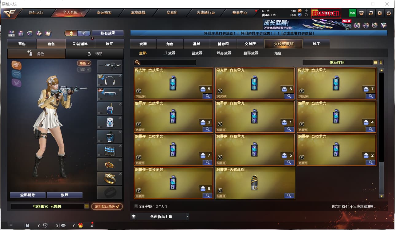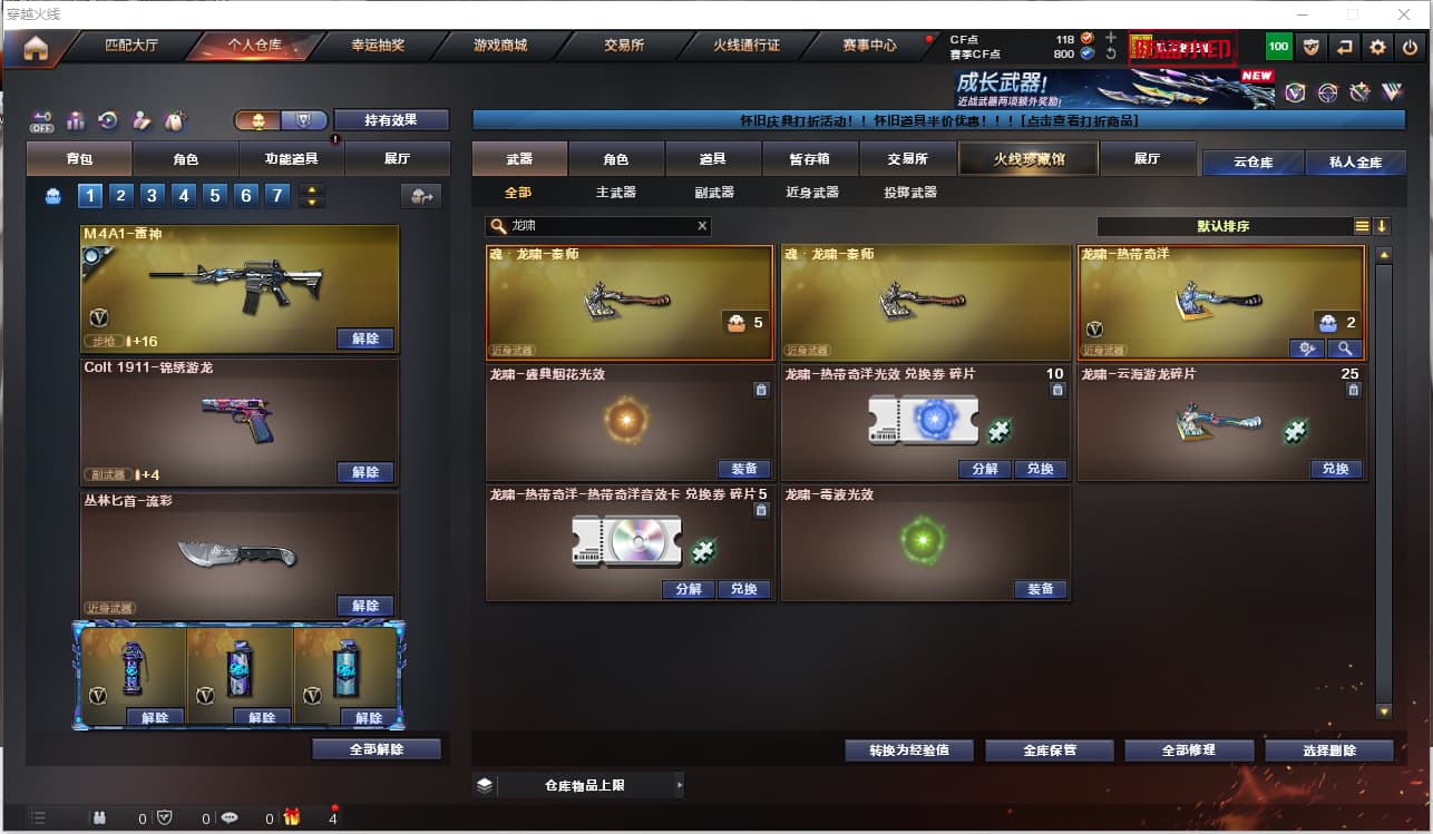 2322823-m200竞技荣光套 白虎)cf南部/南方大区/44v/m200竞技荣光套/白虎/雷神 化蛇皮/黑武士/超新星/金色蔷薇-古蛇迷踪/死神/暗月传说/屠龙动感闪耀/炼狱-百战金芒/龙啸/麒麟刺/云悠悠(四防)/可排