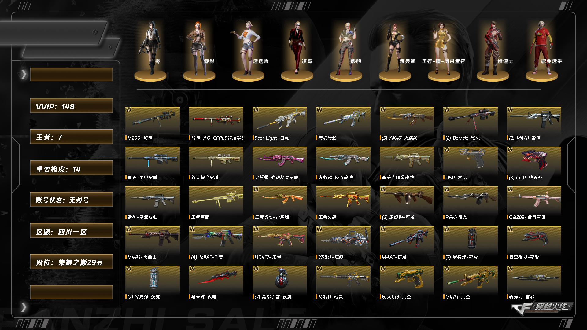 abc10930/西部/四川一区/钱包注销/可排位/可二次/掌火id:/148v/【幻神三件套】/传说光耀/幻神/幻神音效卡/幻神ag17冠军/6烈龙/斯泰尔蝴蝶/夜魔套/幻灵套/usp雷暴/cop堕天神/cop幻灵/青龙/朱雀/白虎/q金色蔷薇/天龙/毁灭/黑骑士/雷神/火麒