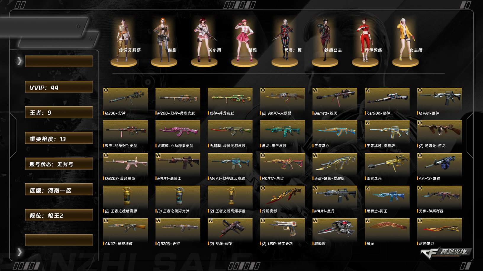 7693/北部/河南一区/可排位/43v/2传说/【四防传说角色/传说艾莉莎/】/传说夜影/幻神/幻神黄忠/幻神降龙/星神/星神璀璨/q金色蔷薇/金色蔷薇呛娘阿敏/q天罚/朱雀/朱雀武当/神工天巧套装/无影神兵利器/usp神工天巧/2/炽芒蝶刃/【角色】/关小雨/晴雅/魅影/乔伊教练/