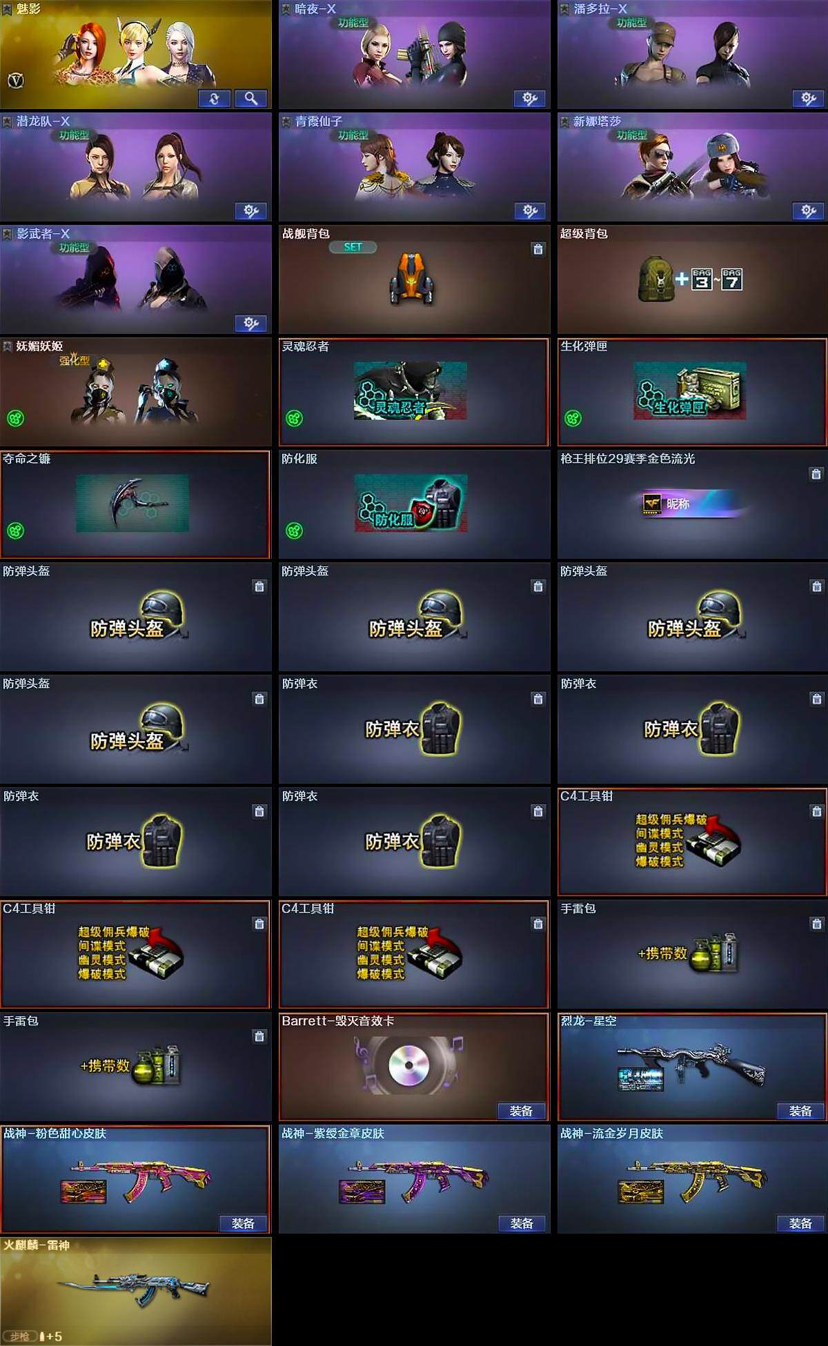 江苏一区-27v-3王者-1炫金 【热门武器】:q03-金色蔷薇,死亡之眼,汤姆逊-烈龙2,沙鹰-修罗 【王者炫金武器】:炫金天龙 【音效卡】:barrett-毁灭音效卡 【皮肤】:烈龙-星空,火麒麟-雷神,战神-粉色甜心皮肤,战神-紫绶金章皮肤,战神-流金岁月皮肤 【角色】:魅影,暗夜-x,潘多拉-x,潜龙队-x,青霞仙子,新娜塔莎,影武者-x 【人偶武器】:迷你深渊冰龙,闪光丹-小乔