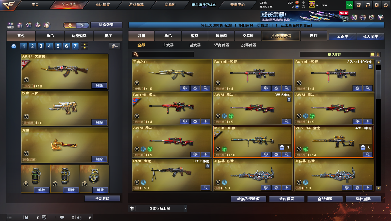 【湖南一区 m200-幻神 幻神-黄忠皮 有禁言】【等级】102【区服】湖南一区【段位】大师5【英雄角色】5【英雄武器】78【王者级武器】王者之心-觉醒版 王者之翼【炫金级武器】炫金天龙 炫金骑士 炫金毁灭【英雄级角色】葵 零 葵 魅影 春【英雄级武器】麒麟刺 scar light-白虎 m14ebr-玄武 aa-12-雷霆 awm-裁决 麒麟刺 rpk-盘龙 m4a1-黑骑士 scar ligh