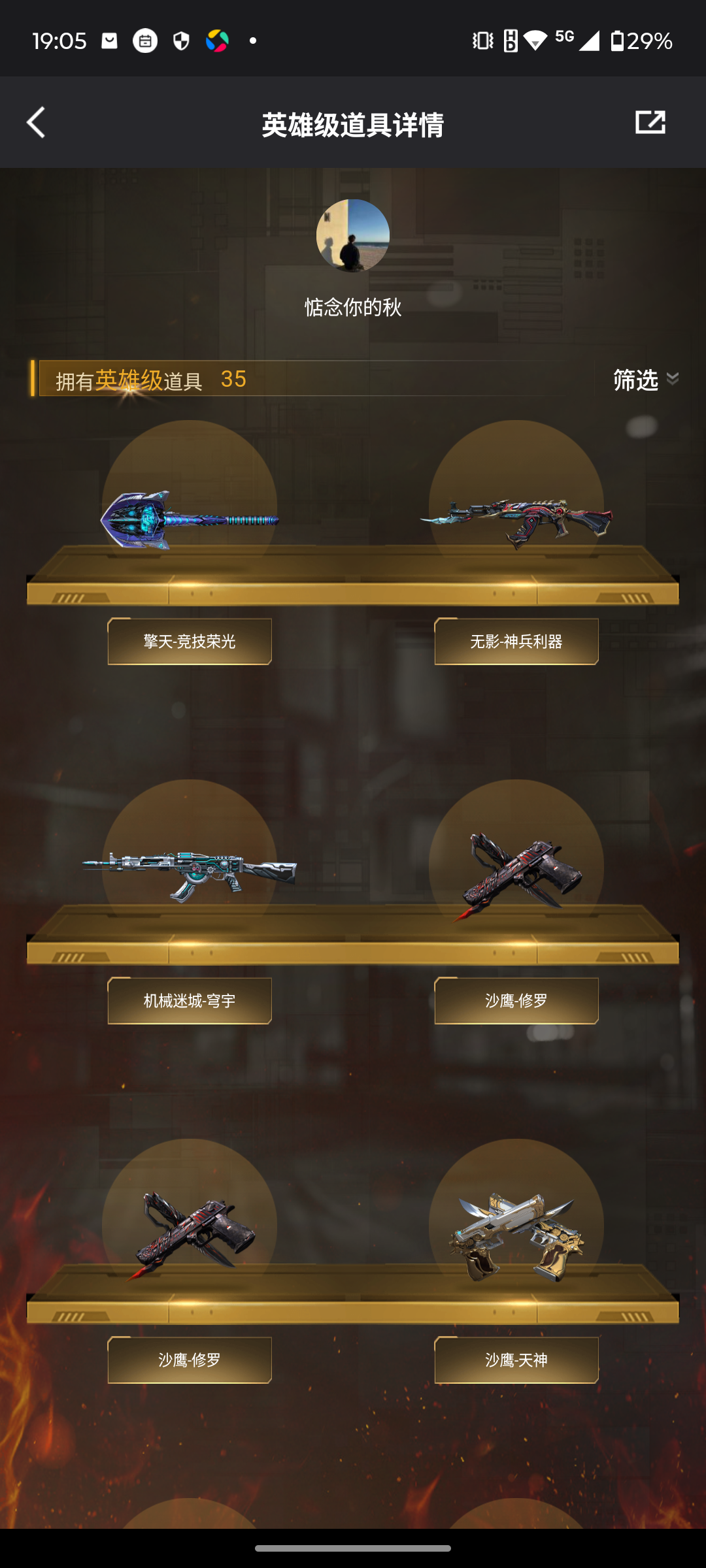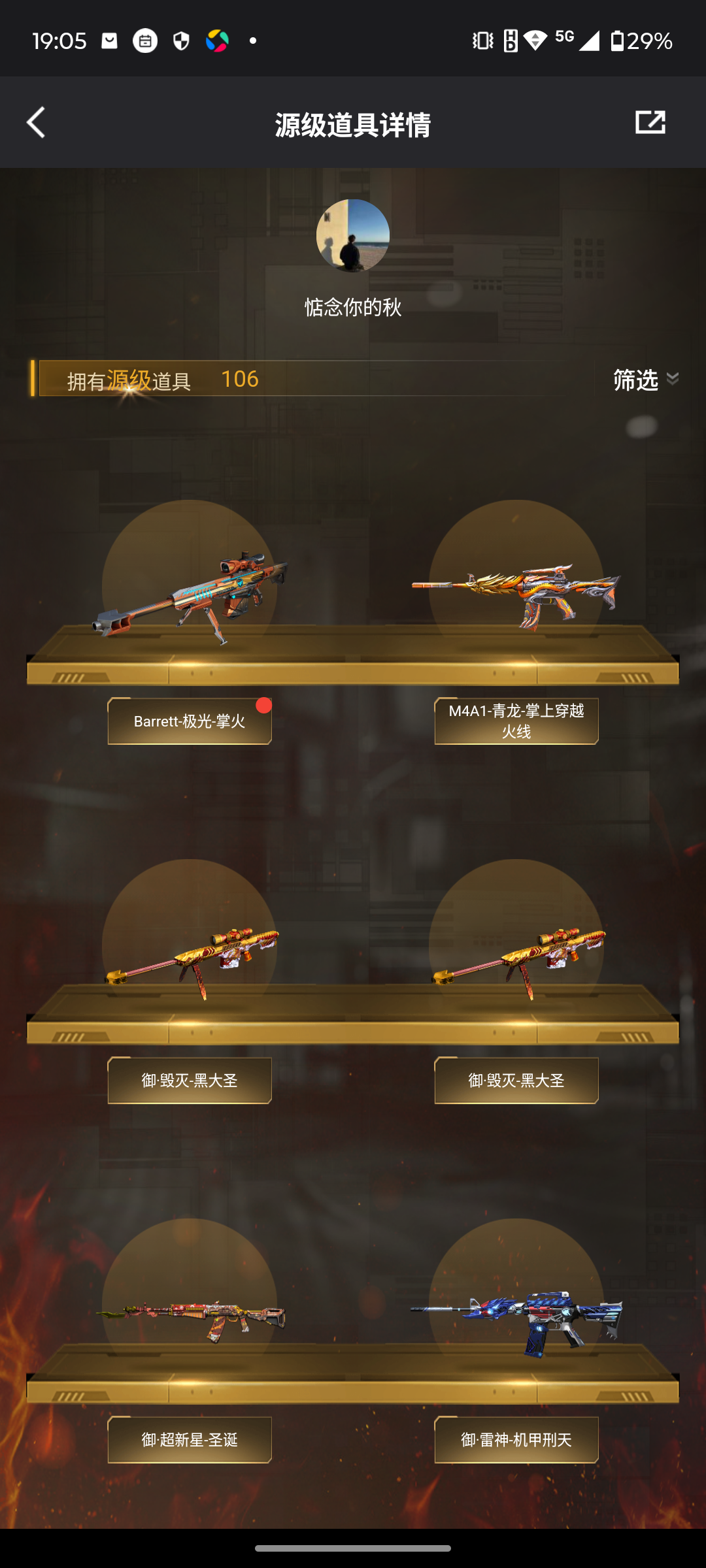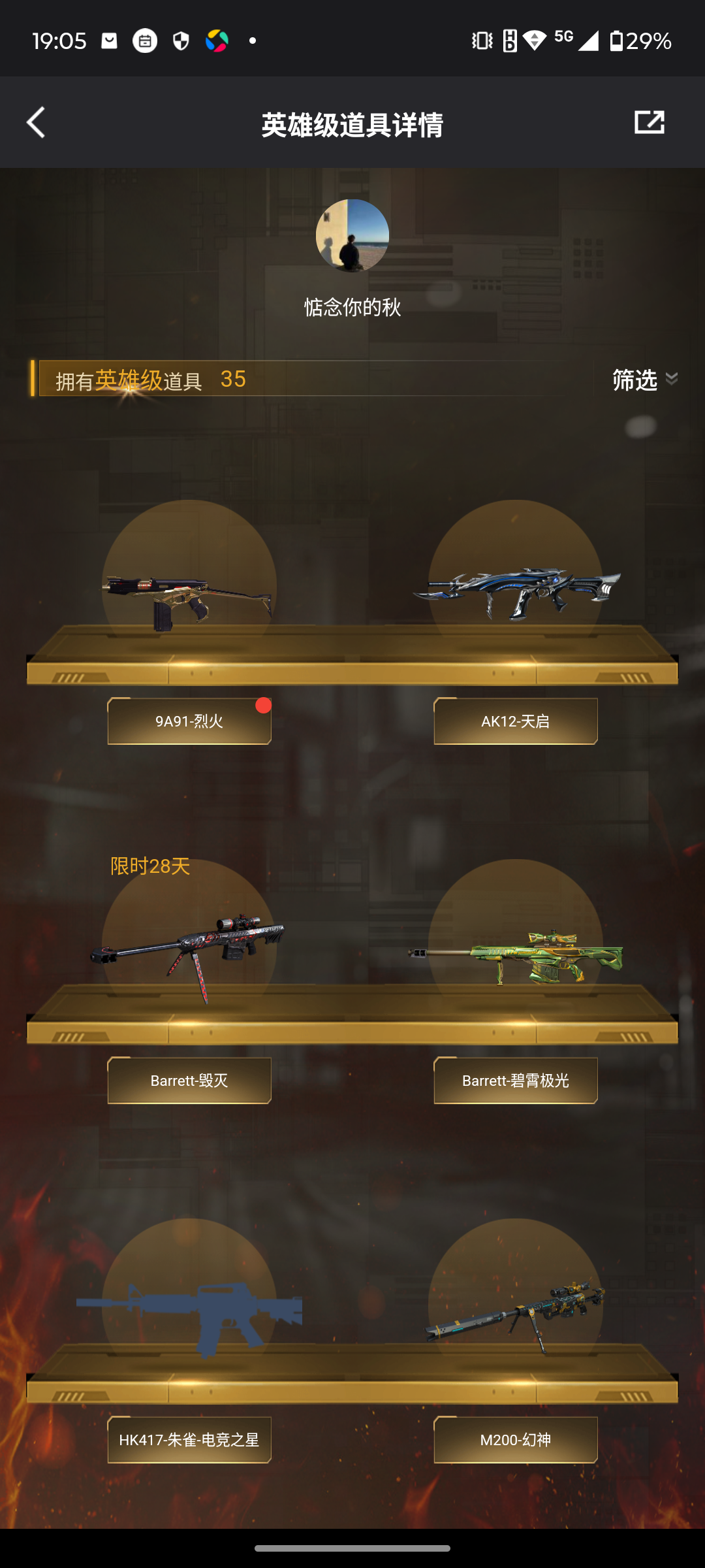 【等级】100【区服】河南一区【段位】荣耀之巅【英雄角色】2【英雄武器】35【英雄级角色】 电竞教官-云悠悠 幻面灵狐 葵-阿尔法武装【英雄级武器】barrett-毁灭 hk417-朱雀-电竞之星 屠龙-电竞之星 m4a1-苍鸣雷神 barrett-碧霄极光 沙鹰-修罗 9a91-烈火 龙啸-烈火龙威 炼狱-百战金芒 ak12-天启 机械迷城-穹宇 麒麟刺-百战金芒 m4a1-再燃火线 m4a1