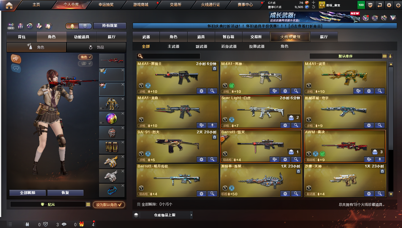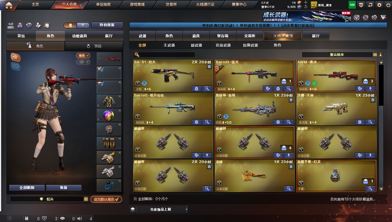 【等级】91【区服】江苏一区【段位】荣耀之巅【英雄武器】17【英雄级武器】麒麟刺 9a91-烈火 龙啸 沙鹰-天神 加特林-炼狱 m4a1-苍鸣雷神 机械迷城-穹宇 awm-裁决 高爆手蕾-幻灵 barrett-毁灭 barrett-暗月传说 m4a1-死神 m4a1-龙血 m4a1-武圣 麒麟刺 麒麟刺 麒麟刺【挑战级武器】末日裁决者 末日裁决者 征服者-超越觉醒 [lv 2] 冰龙粉碎者-白马