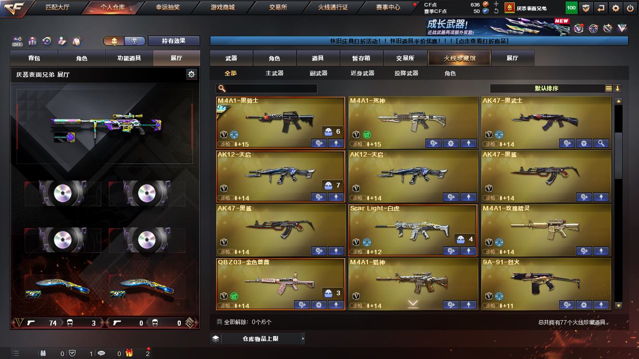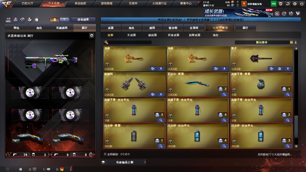 伊11968可排位-可二次【广东一区/77V】【幻神3件套】【M200-幻神/M200-幻神音效卡/幻神-巅峰荣耀】【COP 357-雷霆】【Scar Light-白虎】【QBZ03-金色蔷薇】【白虎-电玩蓝兔/王者之心/王者之武/王者之怒/M4A1-玫瑰精灵/M4A1-猎神/M4A1-死神】【M4A1-雷神4/M4A1-雷神音效卡/雷神-荣耀之魄/雷神-宇航兔皮肤/雷神-暗月】【Barrett-毁灭3/Barrett-毁灭音效卡/毁灭-荣耀之怒/毁灭耀金皮肤/毁灭-暗月】【AK47-火麒麟4/AK47-火麒麟音效卡/火麒麟-AG战队皮/火麒麟-CFSTAR/火麒麟-雷神2】【M4A1-黑骑士/黑骑士-冠军之势】【M4A1-黑龙/黑龙-冠军之武】【AK47-黑武士】【AWM-天龙2/天龙-能量核心】【Barrett-极光/极光-能量核心】【M4A1-千变-孔明皮肤】【汤姆逊-烈龙】【加特林-炼狱2】【沙鹰-修罗3/修罗-CFSTAR】【沙鹰-天神2】【麒麟刺】【擎天】【屠龙8/屠龙-荣耀之锋3】【龙啸5】【暗夜-X/审判者/兔囡囡/零-水下丽影/兰-新年限定/麻雀/青霞仙子/灵狐者-黄金海岸/雪莉杨/潘多拉-X/影武者-X/新娜塔莎/幻影/堕天使/复仇者】【AK-47-猩红传说4】【AA-12-雷霆/AK47-黑鲨2/AK12-天启2】【Barrett-暗月传说】【冰龙粉碎者-白马银枪/阐释者III/征服者7】【COP-旗袍/夺魂】【高爆手雷-竞技荣光3/闪光弹-竞技荣光3/烟雾弹-竞技荣光3】【高爆手雷-雷霆/闪光弹-雷霆/烟雾弹-雷霆】【炫金骑士/炫金天神】【透明头盔/透明护目镜/超级对讲机/超级背包/炫彩背包/防弹头盔3/防弹衣3/C4工具钳3/手雷包5/防化服2】