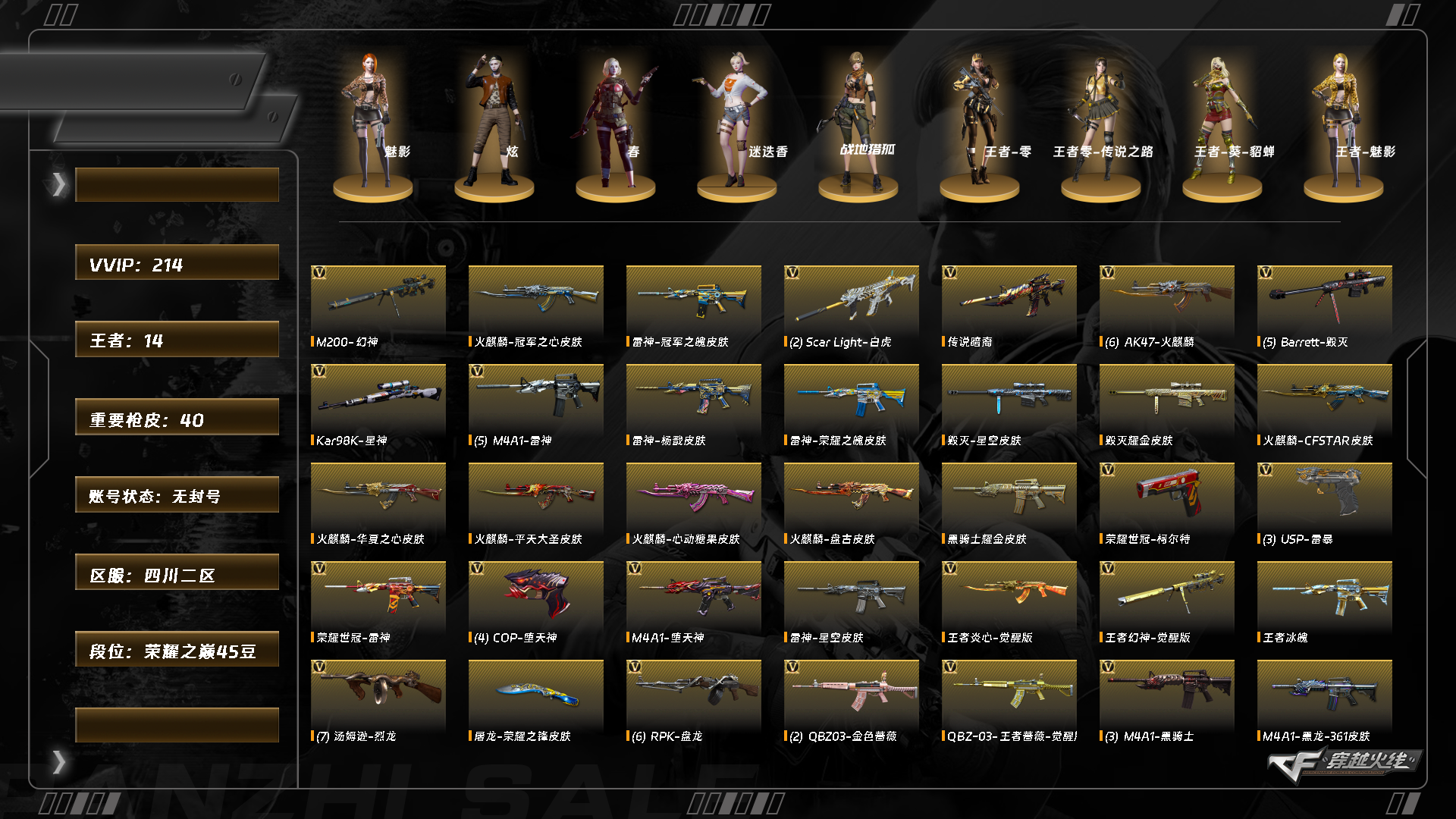 abc9460/西部/四川二区/可排位/钱包注销/可二次/掌火id;/210v/传说暗裔/幻神/王者幻神/星神/白虎/雷霆套/雷暴套/堕天神套/6盘龙/6烈龙/朱雀电竞之星/q金色蔷薇/裁决/王者之魄/王者之势/王者之心/王者之戮/王者炎心/q王者蔷薇/荣耀世冠雷神/王者之