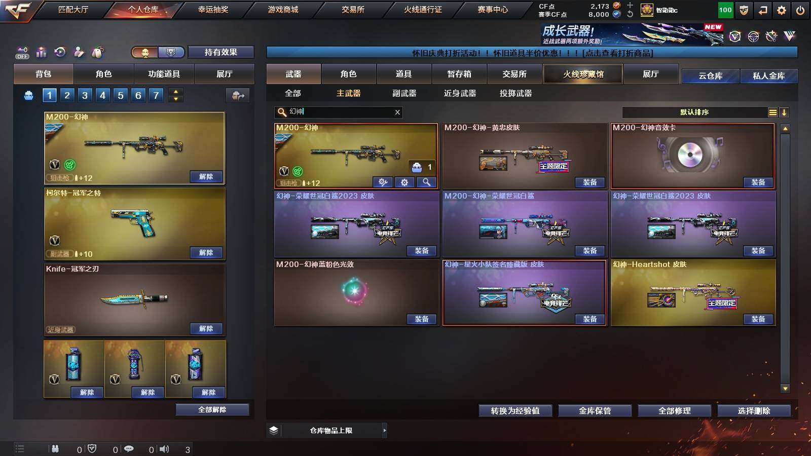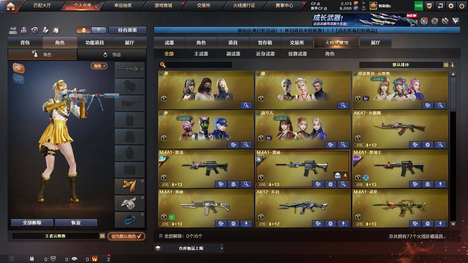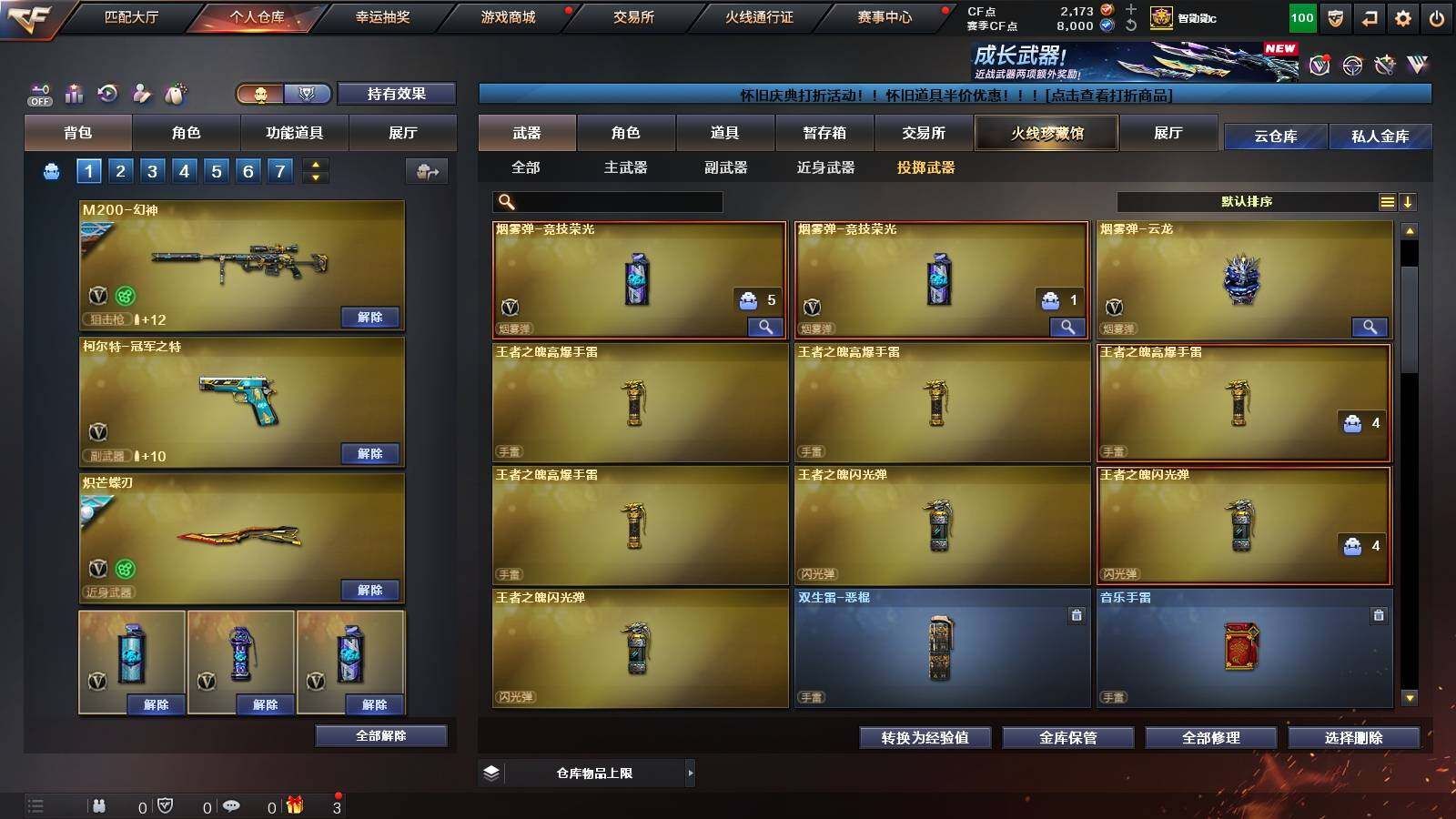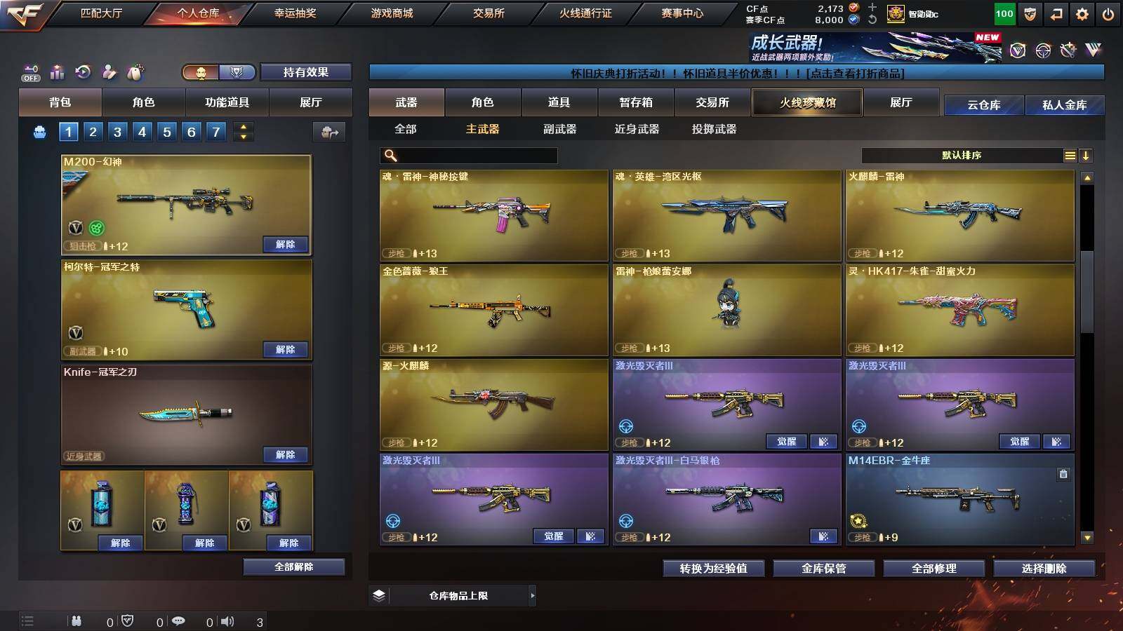 【1718】伊41408可排位-可二次【浙江一区/77v/vip6】【爆破生化全能/幻神三件套5皮肤/裁决三件套6皮服/星神三件套2皮肤/6烈龙蝴蝶/6盘龙炼狱小钢/竞技荣光套/10手呛质量拉满/5四防角色/多张音效卡/蝴蝶刀带皮/主流武器都带皮】【m200-幻神/m200-幻神音效卡/幻神-星火小队签名臻藏版 皮肤/m200-幻神-荣耀世冠白鲨/m200-幻神-黄忠皮肤/幻神-heartshot 皮肤/幻神-荣耀世冠白鲨2023 皮肤】【kar98k-星神/kar98k-星神音效卡】【awm-裁决/awm-裁决音效卡/裁决-巅峰荣耀 皮肤/羽掣 皮肤/流光秘银/胜者为王/叶芒苍灵/运输船】【m200-竞技荣光】【白虎之魄】【g36c-幻影】【炽芒蝶刃/炽芒蝶刃-荣耀世冠白鲨2023 皮肤】【knife-冠军之刃/黄金猫猫手套-白鲨】【usp-冥王/柯尔特-冠军之特/柯尔特-竞技荣光/usp-雷暴2/柯尔特-荣耀世冠白鲨2023】【scar light-白虎-暗星/白虎-ag-cfpls20冠军】【q03-金色蔷薇/q03-金色蔷薇音效卡/q03-cfs2024 皮肤/q03-冠军之薇/金色蔷薇-纸灯龙皮肤/金色蔷薇-破浪逐光 皮肤】【隼】【q03-天罚】【m4a1-雷神/m4a1-雷神音效卡/m4a1-雷神-白鲨皮肤/雷神-冠军之魄/m4a1-战神赵云/雷神-暗月/雷神-虎将】【glock18-武圣/雷霆之契】【barrett-毁灭/barrett-毁灭音效卡/毁灭-荣耀之怒/毁灭-冠军之怒/毁灭-sv-cfpls16冠军/毁灭-风暴/毁灭-虹光风暴 皮肤】【ak47-火麒麟/ak47-火麒麟音效卡/火麒麟-冠军之心/火麒麟-心动糖果/火麒麟-雷神/火麒麟-平天大圣】【m4a1-黑骑士/m4a1-黑骑士音效卡/黑骑士-冠军之势/黑骑士-战神马超/黑骑士-电玩青兔皮肤】【m4a1-黑龙/黑龙-冠军之武】【黑武士-锦绣游龙】【awm-天龙/awm-天龙-传奇白鲨/天龙-秘银】【barrett-极光/barrett-极光音效卡/极光-能量核心】【m4a1-死神】【汤姆逊-烈龙6/烈龙-云海游龙音效卡】【rpk-盘龙6】【加特林-炼狱/炼狱-星空】【斯泰尔-蝴蝶/迷你生化手蕾】【沙鹰-修罗/修罗-cfstar】【沙鹰-天神】【麒麟刺】【擎天/擎天-竞技荣光
