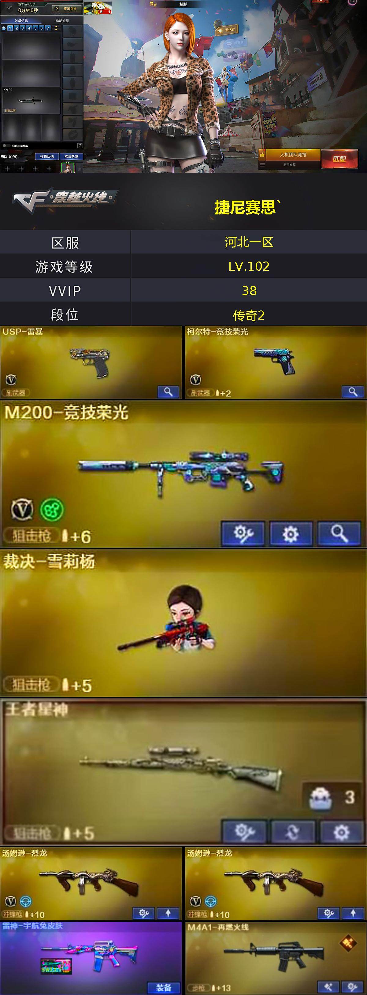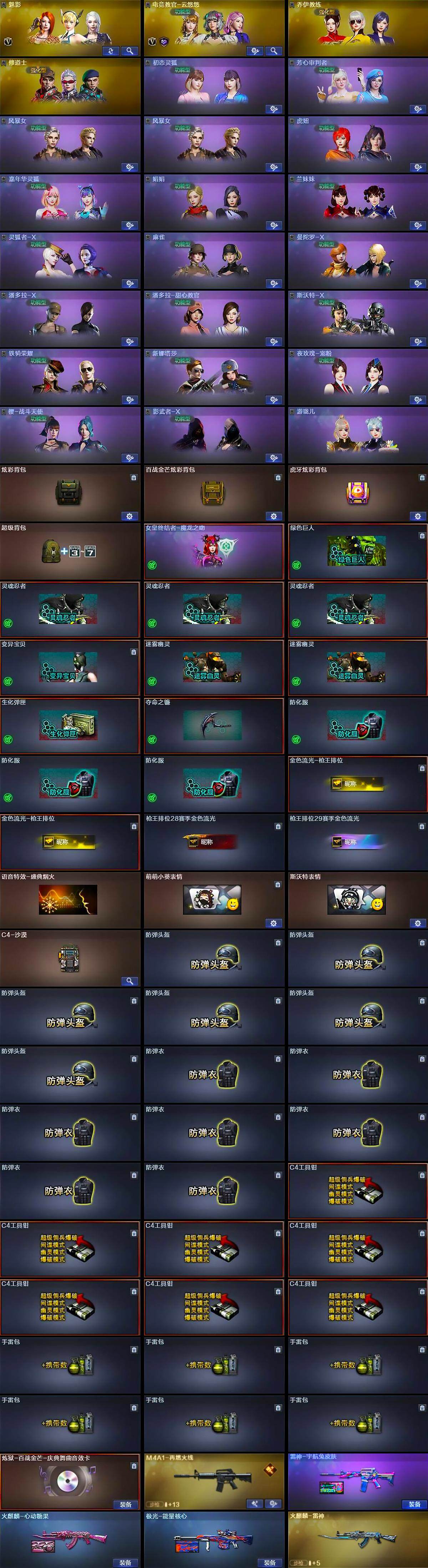 河北一区-37v-5王者-0炫金 【热门武器】:王者星神,m200-竞技荣光,死亡之眼,金色小号,牛牛-ak47,汤姆逊-烈龙2,裁决-雪莉杨,usp-雷暴 【王者炫金武器】:王者之翼,王者星神,王者之锋 【音效卡】:炼狱-百战金芒-庆典舞曲音效卡 【皮肤】:雷神-宇航兔皮肤,m4a1-再燃火线,火麒麟-雷神,火麒麟-心动糖果,毁灭-英雄计划 皮肤,极光-能量核心,轻型军用手斧-再燃火线 【角色】:魅影,电竞教官-云悠悠,乔伊教练,修道士,初恋灵狐,芳心审判者,风暴女2,虎妞,嘉年华灵狐,娟娟,兰妹妹,灵狐者-x,麻雀,曼陀罗-x,潘多拉-x,潘多拉-甜心教官,邱刚敖,斯沃特-x,铁骑荣耀,兔囡囡,新娜塔莎,夜玫瑰-宠粉,樱-战斗天使,影武者-x,游珑儿 【人偶武器】:裁决-雪莉杨,awm-灵狐-15周年嘉年华,牛牛-ak47,迷你裂空之翼,迷你牛魔王,夺魂,迷你牛牛2 【暴走生化】:死亡之眼,超级对讲机 【挑战大师】:暴君乱世-超越max,神圣爆裂者iii,ak47-冰龙粉碎者,激光毁灭者iii,神圣爆裂者-末日iii 【英雄级武器】:ak47-火麒麟2,m4a1-死神,无影-神兵利器,黑武士-锦绣游龙,ak-47-猩红传说2,黑骑士-海王,barrett-毁灭,m200-竞技荣光,炼狱-百战金芒,汤姆逊-烈龙2,aa-12-雷霆,usp-雷暴,柯尔特-竞技荣光,屠龙,龙啸,麒麟刺2,擎天-竞技荣光,麒麟刺-百战金芒,王者之锋-觉醒版,王者之击-觉醒版,高爆手蕾-竞技荣光3,闪光丹-竞技荣光3,盐雾蛋-竞技荣光4,m4a1-赤狱骑士 【道具】:炫彩背包,百战金芒炫彩背包,虎牙炫彩背包,超级背包,女皇终结者-魔龙之吻,绿色巨人,灵魂忍者3,变异宝贝,迷雾幽灵2,生化弹匣,夺命之镰,防化服3,金色流光-呛王排位2,呛王排位28赛季金色流光,呛王排位29赛季金色流光,语音特效-盛典烟火,萌萌小葵表情,斯沃特表情,c4-沙漠,防弹头盔6,防弹衣7,c4工具钳7,手蕾包6 【特殊呛械】:2烈龙