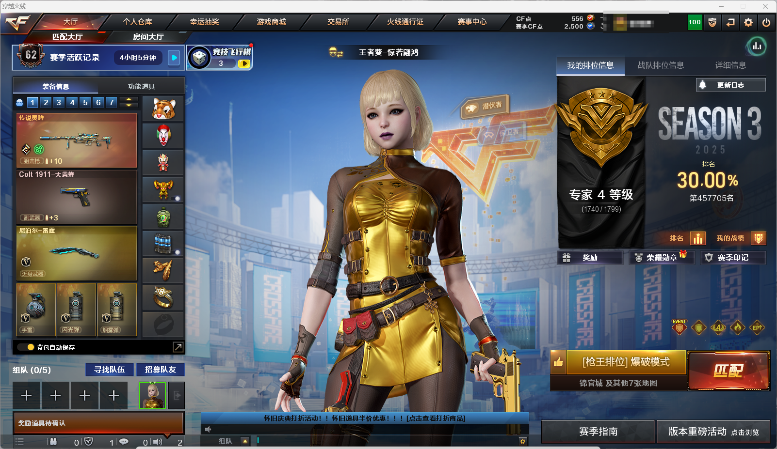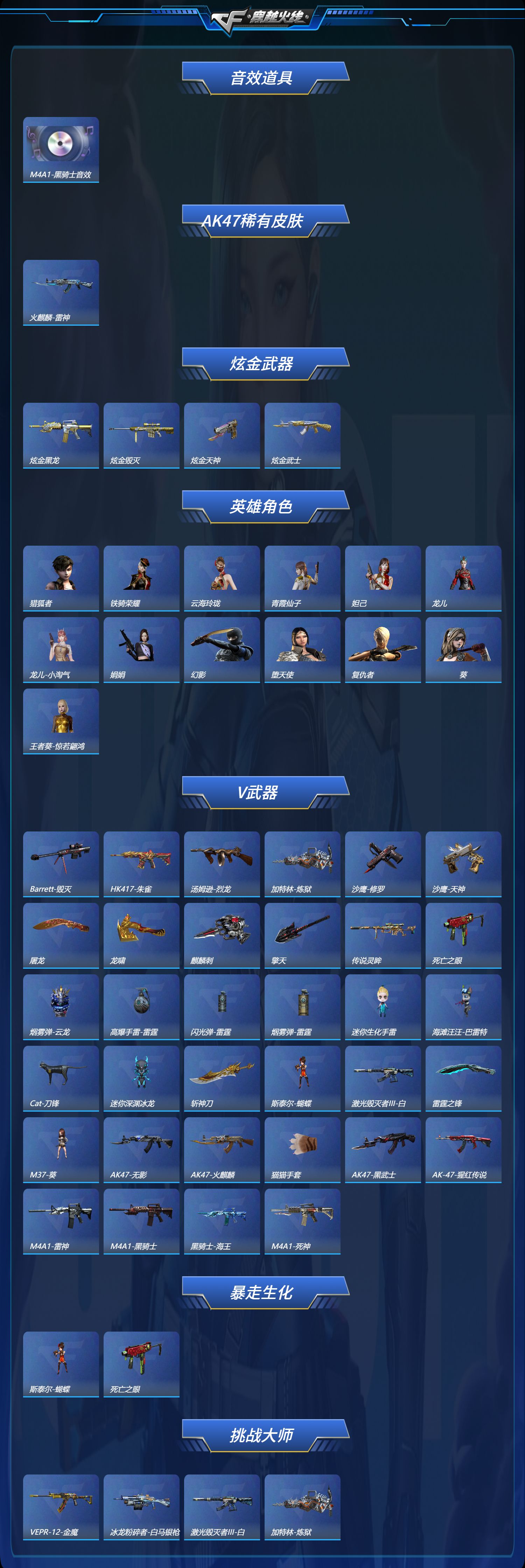 【等级】102【区服】福建一区【段位】专家4【英雄角色】1【英雄武器】39【传说级武器】传说灵眸【炫金级武器】炫金武士 炫金天神 炫金黑龙 炫金毁灭【英雄级角色】葵【英雄级武器】 麒麟刺 加特林-炼狱 m4a1-黑骑士 ak47-黑武士 盐雾蛋-云龙 无影-神兵利器 m4a1-黑骑士 hk417-朱雀 黑骑士-海王 ak-47-猩红传说 雷霆之锋 高爆手蕾-雷霆 盐雾蛋-雷