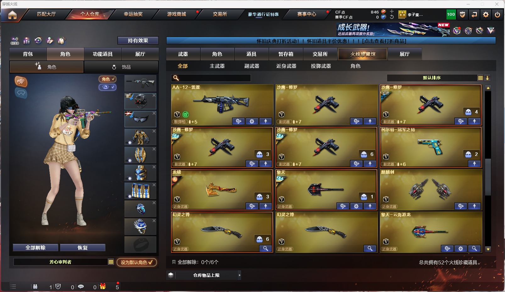 []3英雄角色 1王者武器 2炫金武器 45v武器 可二次 可修改实名 【排位资格】:有 【v武器】:烈龙-云海游龙屠龙-云海游龙传说灵眸g36c-幻影擎天-云海游龙无影-神兵利器机械迷城-穹宇柯尔特-冠军之特m200-幻神ak47-火麒麟m4a1-雷神m4a