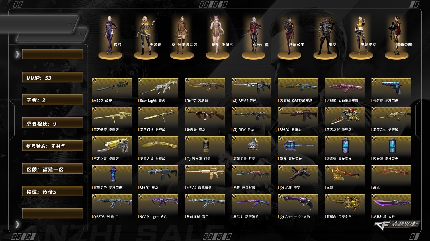 [15075892]lc7543/东部/福建一区/可排位/52v/幻神/王者幻神/觉醒版/白虎/白虎暗星/q独角/【/四防角色/王者春/】/柯尔特竞技荣光/scar玄豹/黑骑士音效卡/黑龙音效卡/雷神/黑龙/黑骑士/玫瑰精灵/火麒麟/王者之心/3盘龙/烈龙/王者之灵/修罗/王者之刺/龙啸/擎天竞技荣光/屠龙/王者之锋/找回包赔