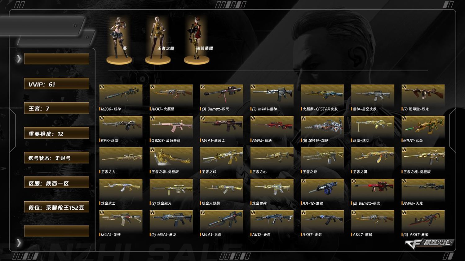 [15110195]lc7755/西部/陕西一区 /可排位/61v/幻神/裁决/q金色蔷薇/1盘龙6炼狱/6烈龙/雷神音效卡/毁灭/极光/天龙/雷神/我身/黑龙/龙血/黑骑士/武圣/王者之魄/天启/火麒麟/无影/麒麟/黑鲨/黑武士/超新星/aa12雷霆/天神/修罗/麒麟刺/龙啸/屠龙/王者之啸/cat猫呛/钱包无法注销/找回包赔