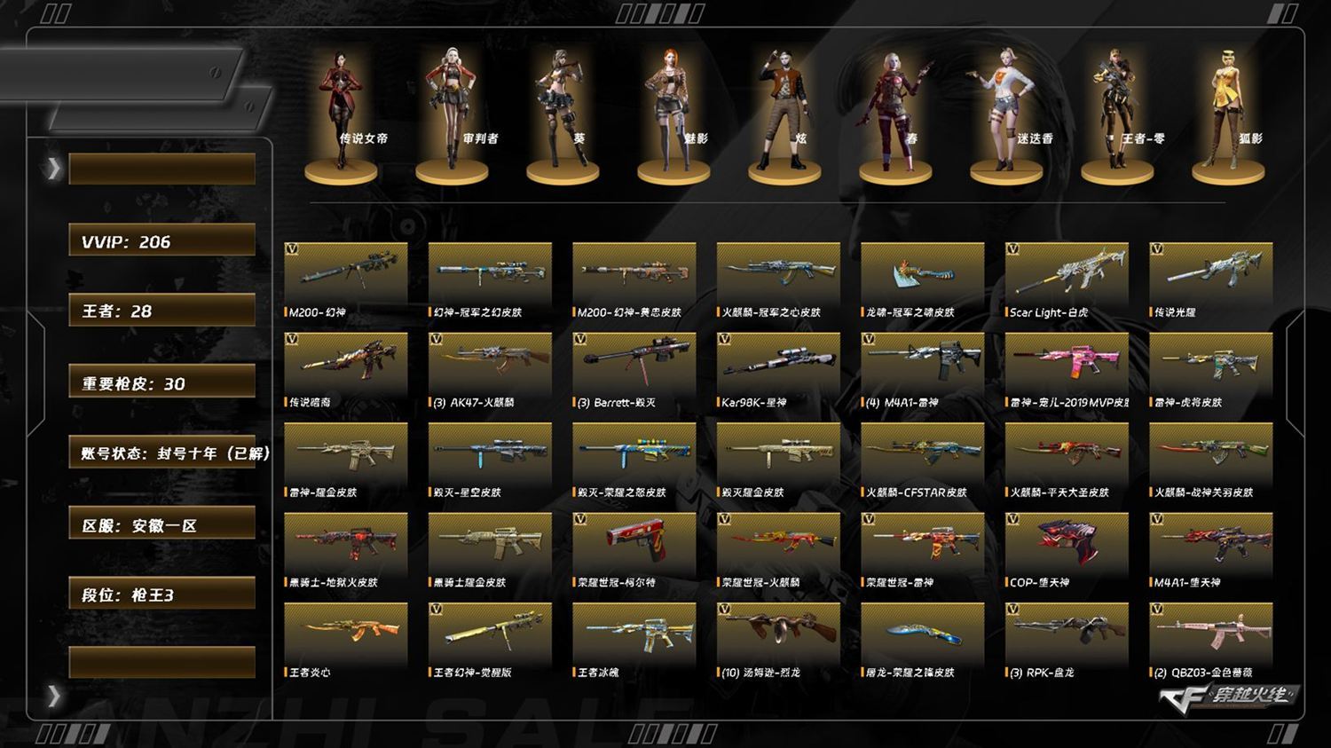 lc7762/东部/安徽一区/可排位/205v/传说女帝/传说光耀/传说暗裔/幻神/幻神冠军之幻/幻神黄忠/王者幻神/觉醒版/星神/裁决/白虎/q金色蔷薇/hk朱雀/青龙/6修罗/3盘龙5炼狱/6烈龙/【/四防角色/传说女帝/王者春/王者凌国色天香/王者瞳闭月羞花/】/cop雷霆/cop堕天神/
