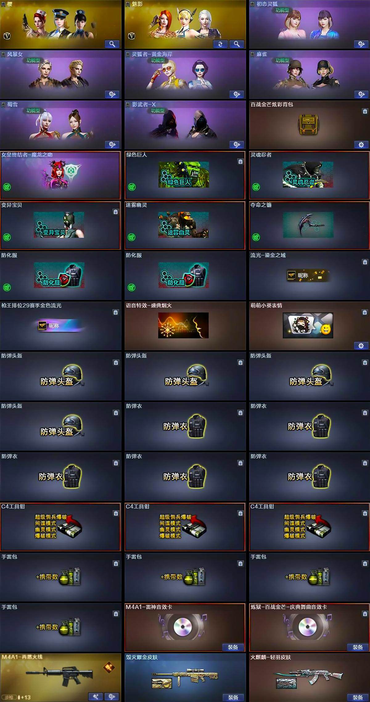 河南一区-42v-5王者-2炫金 【热门武器】:hk417-朱雀,死亡之眼,汤姆逊-烈龙5,rpk-盘龙5,加特林-炼狱,沙鹰-修罗 【王者炫金武器】:王者之戮,王者之力,王者之击,炫金雷神2 【音效卡】:m4a1-雷神音效卡,炼狱-百战金芒-庆典舞曲音效卡 【皮肤】:m4a1-再燃火线,火麒麟-轻羽皮肤,毁灭耀金皮肤,轻型军用手斧-再燃火线 【角色】:樱,魅影,初恋灵狐,风暴女,灵狐者