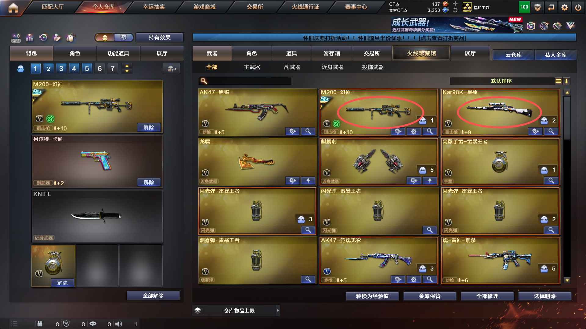 2059山东一区 【雷暴王者投掷物1套】【幻神-冠军之幻皮肤】【98k星神】【龙啸】【麒麟刺】【王者玉锋】【源qbz金色蔷薇】【源HK417朱雀】【魂裁决胜者为王】