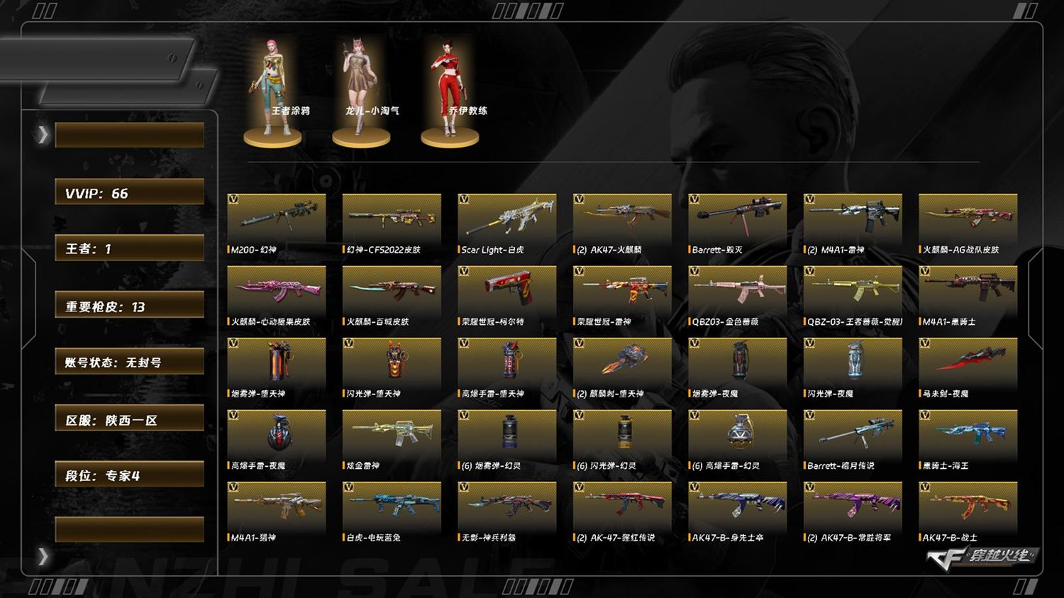 7832/西部/陕西一区/可排位/66v/幻神/幻神cfs2022/白虎/q金色蔷薇/q王者蔷薇/觉醒版/【/四防角色/王者涂鸦/】/荣耀世冠柯尔特/黑骑士音效卡/毁灭青帝/火麒麟百城/马呛/有过十年记录/找回包赔