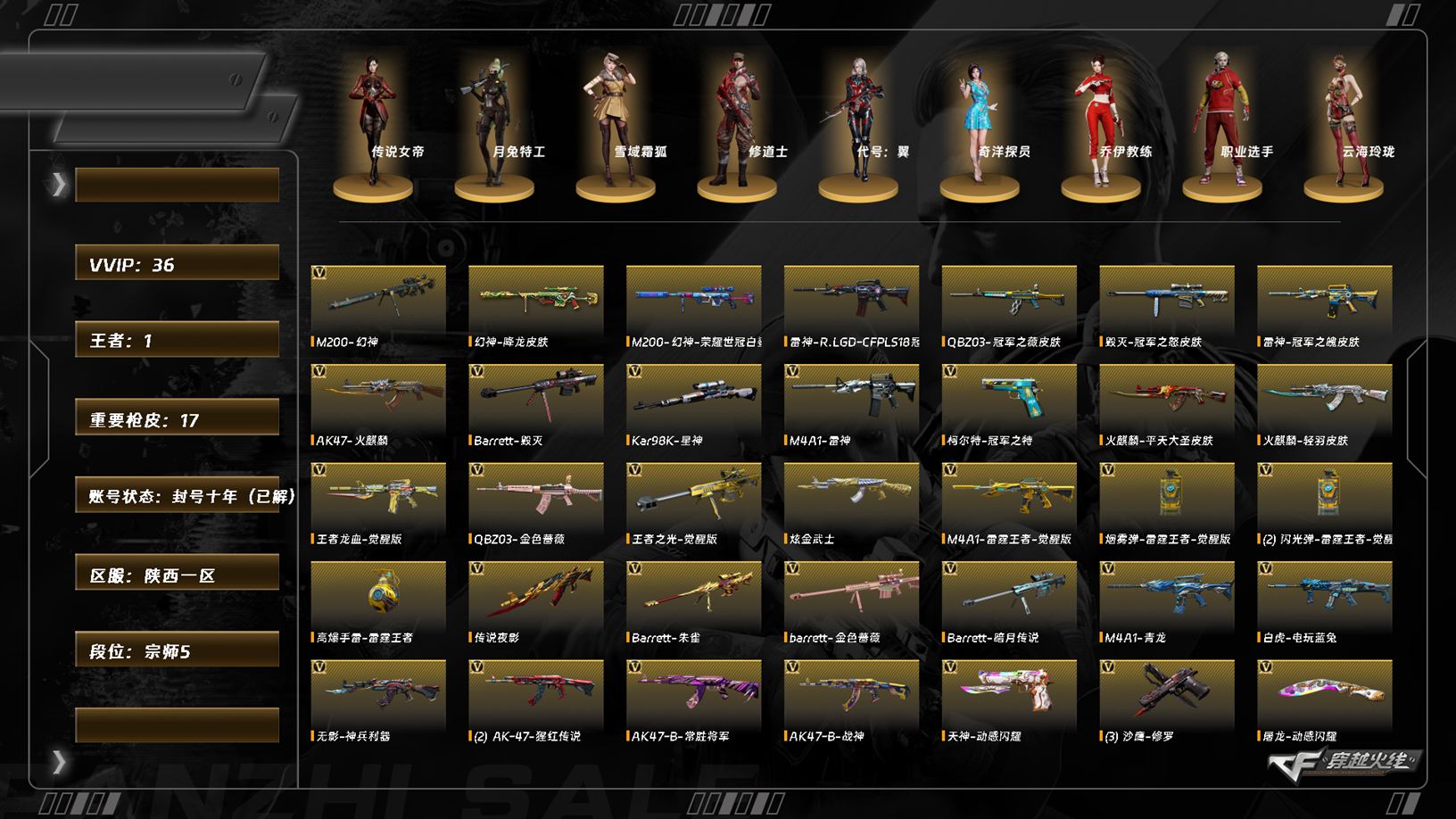 lc7835/西部/陕西一区/可排位/39v/传说女帝/传说夜影/【/幻神三件套/幻神/幻神音效卡/幻神降龙/幻神荣耀世冠白鲨/】/星神/q金色蔷薇/q冠军之薇/王者芳薇/觉醒版/白虎电玩蓝兔/青龙/冠军之刃/【/四防角色/传说女帝/】柯尔特冠军之特/cop白鲨/毁灭音效卡/毁灭青帝/毁灭冠