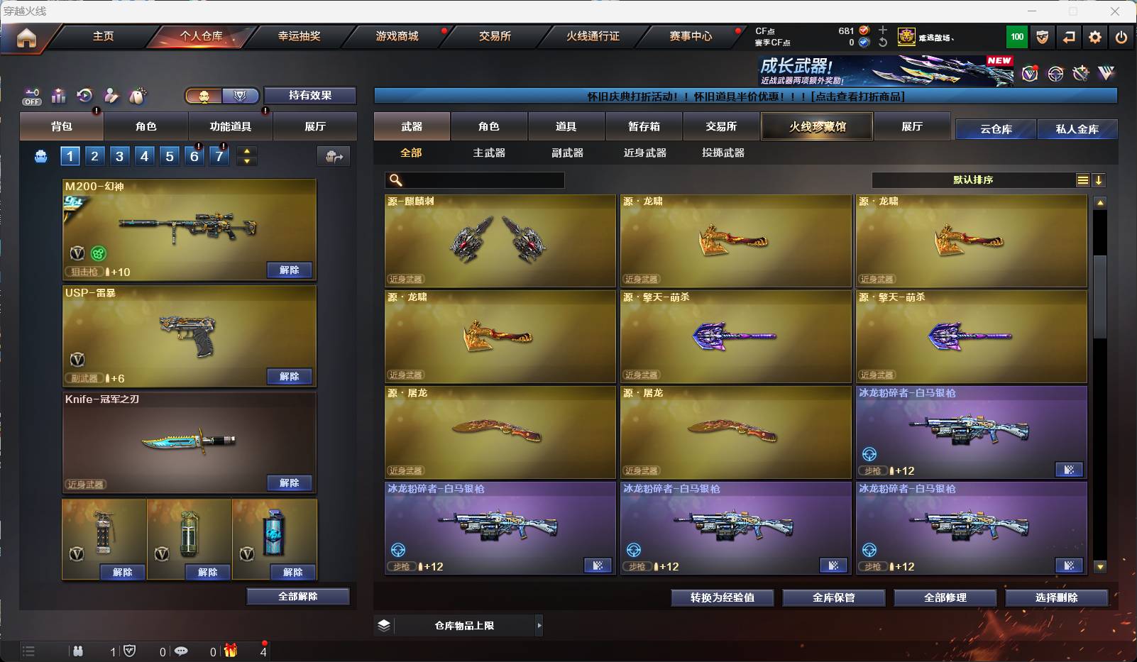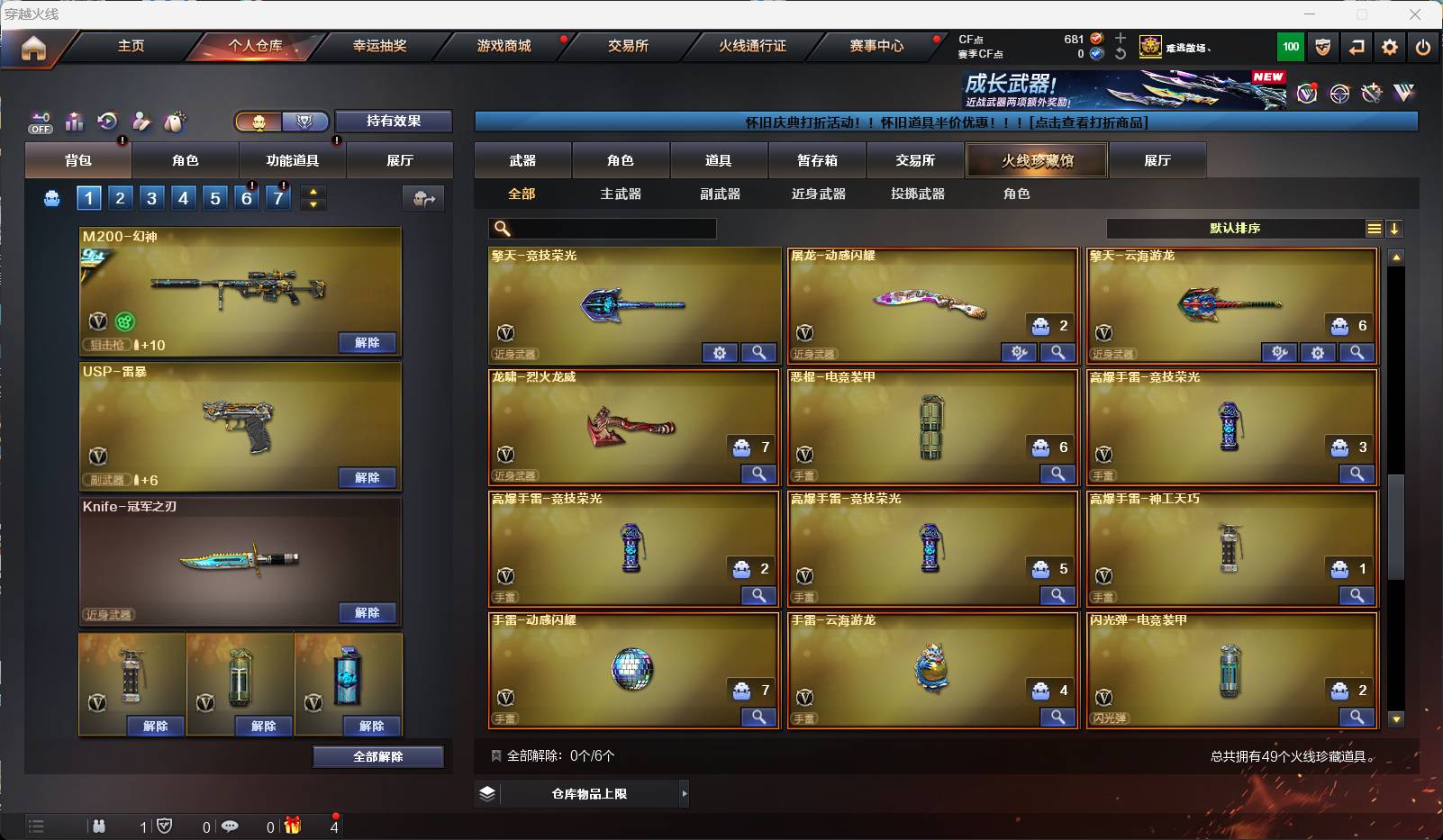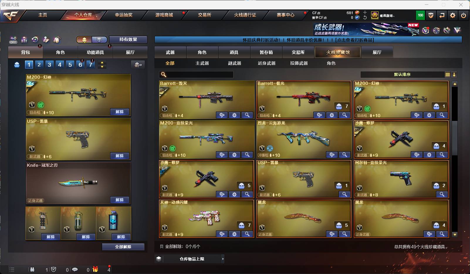 001江湖:001江湖l423 黑龙江一区:vip6 可二次可排位 荣誉元帅等级 宗师5.四防电竞教官-云悠悠 m200-幻神(黄忠冠军之幻皮肤)usp-雷暴 knife-冠军之刃2 竞技荣光套装 q03-金色蔷薇(巅峰荣耀皮肤)m4a1-雷神(宠儿赵云星空宇航兔皮肤)m4a1-黑骑士(ag-s4-冠军典藏)scar-light-白虎 烈火-动感闪耀 王者之势 barrett-毁灭带音效卡
