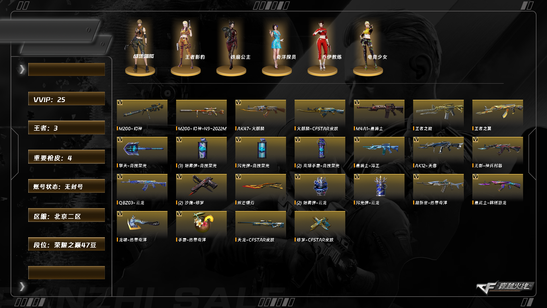 abc10350/北部/北京二区/可排位/钱包注销/可二次/掌火id:346323135/24v/幻神/幻神n92022mvp/炽芒蝶刃/黑骑士/黑骑士音效卡/火麒麟/天启/无影神兵利器/【小人呛】/火麒麟灵狐/kac锯式机呛黑桃战神/【四防已开】/王者影豹/【角色】/战地猎狐/奇洋探员/乔伊教练/