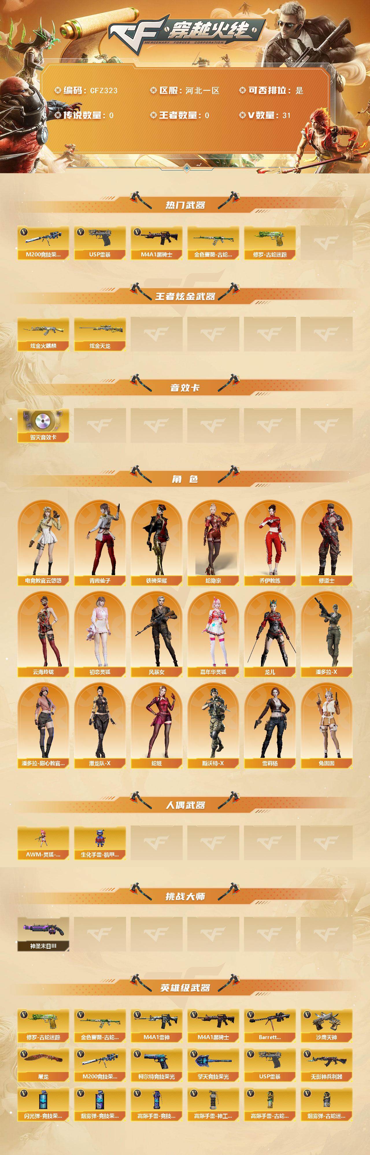【cfz323】30v/102级/荣耀元首/2炫金/1英雄/金色蔷薇-古蛇迷踪/修罗-古蛇迷踪/m200-竞技荣光/m4a1-黑骑士/usp-雷暴/炫金火麒麟/炫金天龙/barrett-毁灭音效卡/电竞教官-云悠悠/蛇隐宗/乔伊教练/修道士/云海玲珑/初恋灵狐/风暴女/嘉年华灵狐/龙儿/潘多拉-x/潘多拉-甜心教官/潜龙队-x/青霞仙子/蛇姬/斯沃特-x/铁骑荣耀/兔囡囡/雪莉杨/awm-灵狐-15周年嘉年华/生化手蕾-机甲核心/神圣爆裂者-末日iii/m4a1-雷神/无影-神兵利器/barrett-毁灭/沙鹰-天神/柯尔特-竞技荣光/屠龙/擎天-竞技荣光/高爆手蕾-竞技荣光/高爆手蕾-神工天巧/高爆手蕾-古蛇迷踪/闪光丹-竞技荣光/盐雾蛋-竞技荣光/盐雾蛋-古蛇迷踪/古蛇迷踪炫彩背包/超级背包/女皇终结者-魔龙之吻/绿色巨人/灵魂忍者/迷雾幽灵/生化弹匣/夺命之镰/防化服/金色流光-呛王排位/星辰流光-呛王排位/呛王排位28赛季金色流光/呛王排位29赛季金色流光/古蛇迷踪打击特效/蛇隐宗表情/防弹头盔/防弹衣/c4工具钳/手蕾包