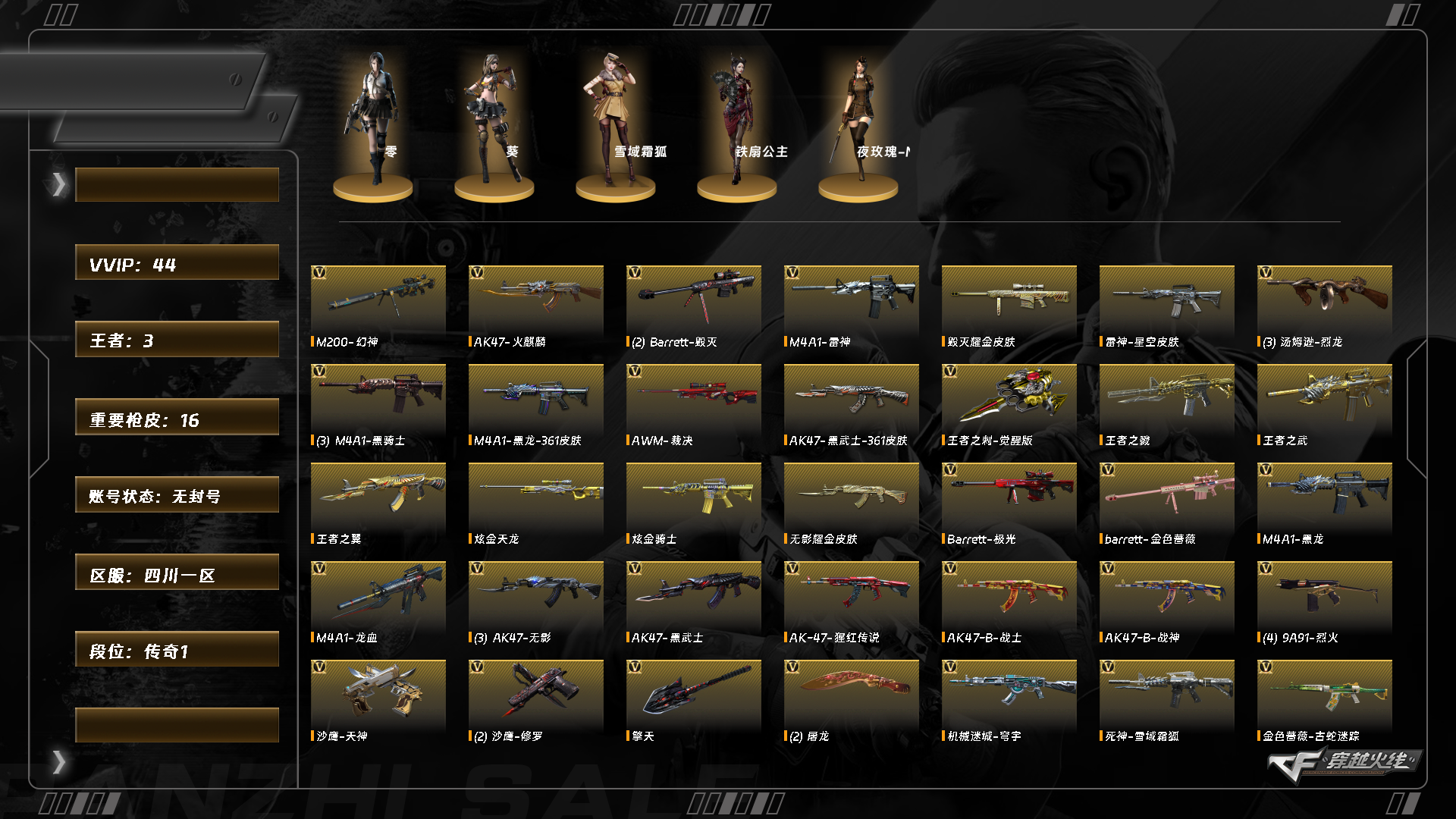 9555/西部/四川一区/可排位/ 【传奇1】【lv.100 大元帅】vip3/43v/幻神/金色蔷薇古蛇迷踪/芭蕾特金色蔷薇/3烈龙/裁决/极光/毁灭/雷神/黑龙/黑骑士/火麒麟/无影/黑武士/修罗/擎天/屠龙/【皮肤音效卡】/毁灭英雄计划/毁灭虹光风暴/雷神白鲨冠军/黑龙361/毁灭音效卡/