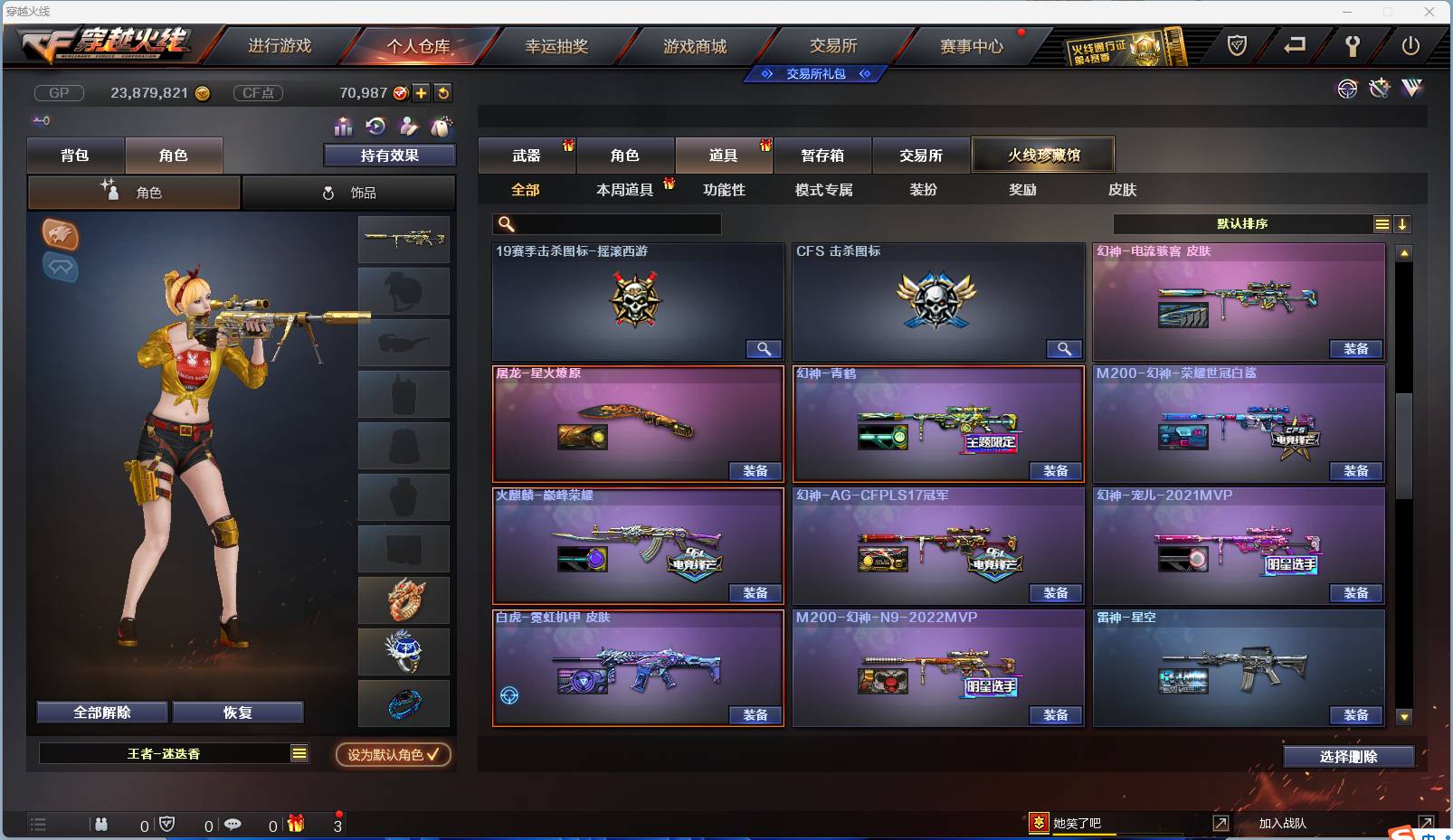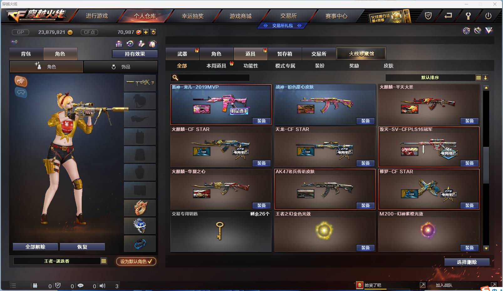 002:9092zy可二次【广西一区-广西】 65v19王者炫金【主武器类型】 传说灵眸 m200-幻神 王者幻神觉醒版 m200-竞技荣光 传说圣灵 王者芳薇觉醒版 scar-白虎 王者之怒觉醒版 barrett-毁灭 barrett-朱雀 王者火魄觉醒版 m4a1-雷神 2 m4a1-黑龙 m4a1-黑骑士 2 m4雷霆王者觉醒版 m4a1-幻灵 m4a1-死神 m4a1-青龙 ak47-火麒麟 王者之影觉醒版 烈火-9a-91 汤姆逊-烈龙 烈龙-云海游龙 加特林-炼狱 芭蕾特-零-水下丽影 ak常胜将军 ak身先士卒 akb-战士 akb-战神 ak猩红传说 3 黑骑士海王 barrett暗月传说 2 q03-吕布 手蕾-云海游龙 盐雾蛋雷霆王者觉醒版 2 高爆手蕾竞技荣光 闪光丹竞技荣光 高爆手蕾堕天神 4 闪光丹堕天神 4 盐雾蛋堕天神 4 高爆手蕾幻灵 闪光丹幻灵 盐雾蛋幻灵 迷你生化手蕾 【王者武器】 q-03-王者蔷薇 barrett雷霆王者 雷霆王者之锋 高爆手蕾雷霆王者 【副武器类型】 cop-幻灵 沙鹰-修罗 4 cfcolt1911大黄蜂 【近身武器类型】 王者之锋觉醒版 2 屠龙 3 幻灵之锋 龙啸-堕天神 3 麒麟刺-堕天神 王者之击觉醒版 擎天 2 擎天-云海游龙 迷你深渊冰龙 【稀有角色】 王者潘多拉 灵狐者-职业经理 王者涂鸦 王者-迷迭香 王者-葵-貂蝉 影豹 雾萌萌 迷迭香 职业选手 云海玲珑 潘多拉x 暗夜x 堕天使 复仇者 超级背包 【武器皮肤及道具】 幻神-宠儿-2021mvp m200-幻神-n9-2022mvp 幻神-ag-cfpls17冠军 m200-幻神-荣耀世冠白鲨 幻神-电流骇客 幻神-纸灯龙 幻神-青鹤 雷神-宠儿-2019mvp 雷神-炽焰魔龙 雷神-星空 雷神-暗月 白虎-霓虹机甲 火麒麟-华夏之心 火麒麟-巅峰荣耀 火麒麟-cfstar 火麒麟-平天大圣 毁灭-sv-cfpls16冠军 毁灭-星空 天龙-cfstar 修罗-cfstar 屠龙-星火燎原 幻神音效卡 白虎音效卡 黑骑士音效卡 屠龙-云海游龙音效卡