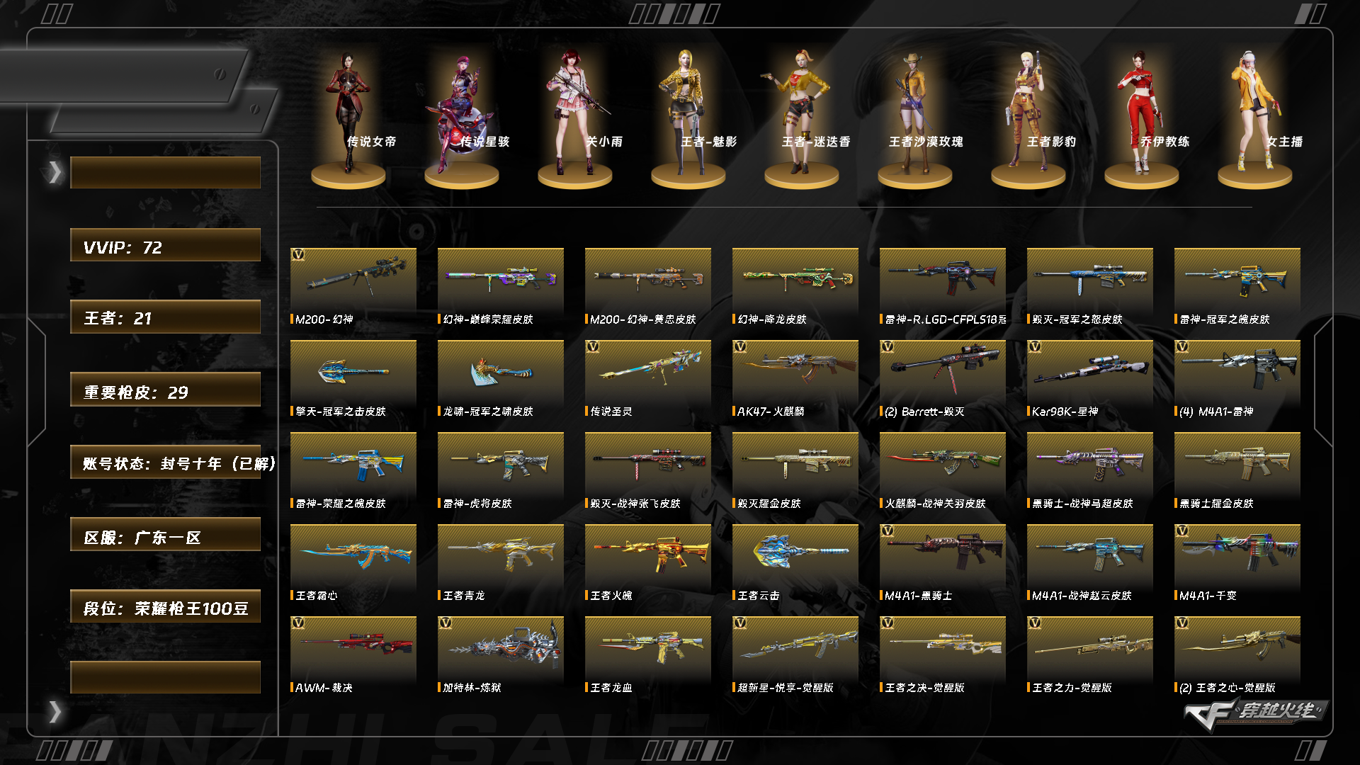 [15445785]xh5191/【信誉分255】/南部/广东一区/可排位【64000点卷】【荣耀呛王100豆】【lv.99 上将6】72v/【双传说角色】/【生化双玄武】/传说女帝/传说星骇/传说圣灵/【幻神三件套4皮】/幻神/幻神音效卡/幻神agcfpls24冠军/幻神巅峰荣耀/幻神降龙/幻神黄忠/星神/星神璀璨/白虎电玩蓝兔/玄武/王者玄武/王者青龙/q天罚【裁决三件套】/裁决/裁决音效卡/裁决叶忙苍灵/神工天巧套/cop幻灵/usp冥王/usp神工天巧/【音效卡】/雷神音效卡/火麒麟音效卡/毁灭音效卡/【呛皮】/毁灭定军扬威/毁灭冠军之怒/裁决叶芒苍灵/雷神荣耀之魄/白虎大汉风骨/雷神炽焰魔龙/【四防】/王者魅影/王者沙漠玫瑰/王者影豹【角色】/关小雨/女主播/乔伊教练/炽天使/【小人呛】雷神小红/斯太尔蝴蝶/雷神呛娘蕾安娜【道具】/永久烟雾头/各种戒指/各种玩偶/永久ac/永久雷包/细节看图/【账号封禁过十年已解】