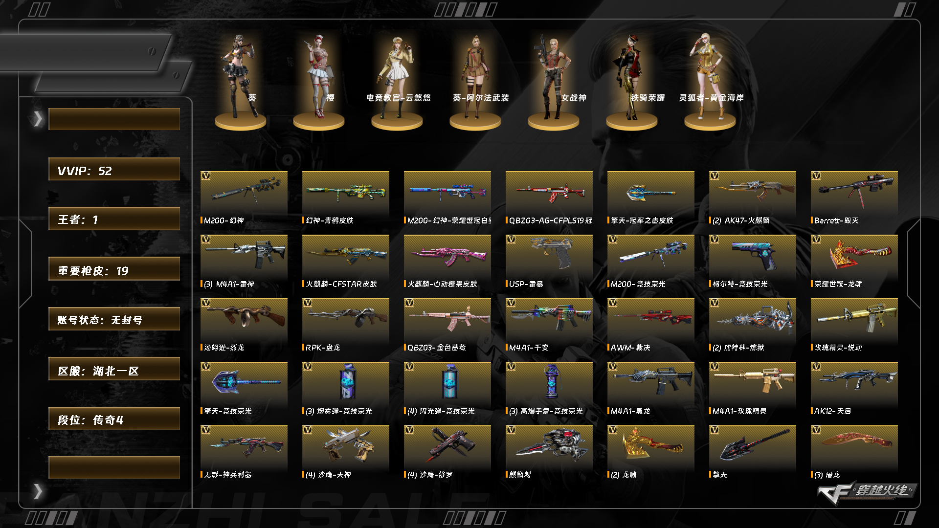[15467596]abc10655/南部/湖北一区/钱包提交强制/可排位/可二次/掌火id:75739570/52v/幻神/幻神荣耀世冠白鲨/幻神青鹤/m200竞技荣光套/m200竞技荣光/裁决/usp雷暴/q金色蔷薇/毁灭/雷神/火麒麟/黑龙/天启/【小人呛】/火麒麟绝迹/【四防未开】/电竞