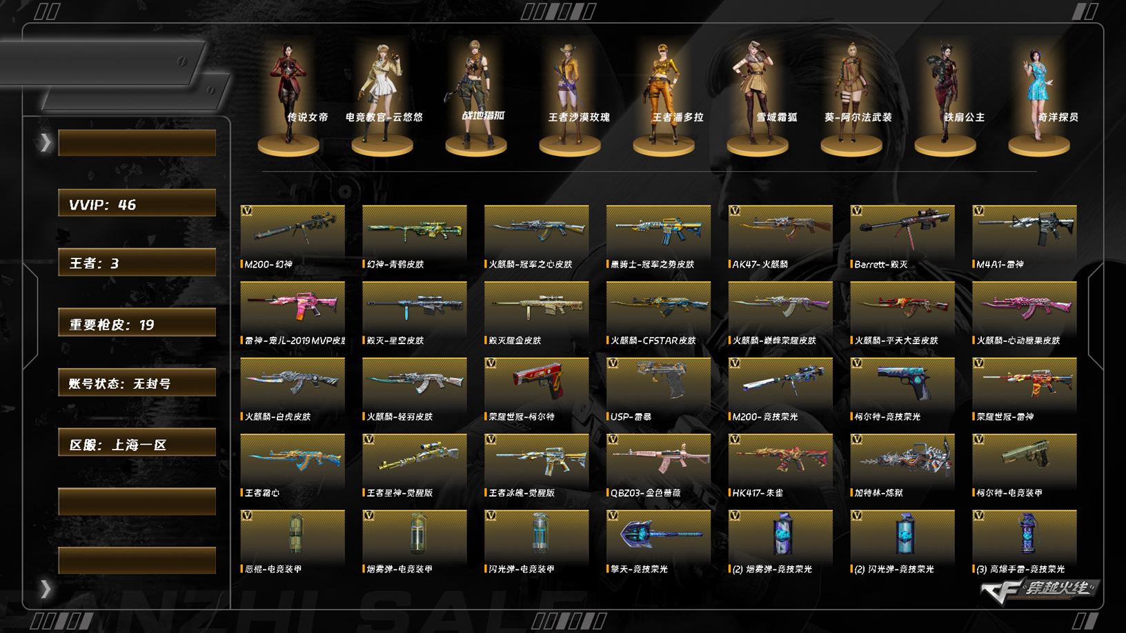 [15467803]7864/东部/上海一区/可排位/45v/【四防传说角色/传说女帝】/幻神/幻神青鹤/王者星神/觉醒版/【竞技荣光套装/m200竞技荣光/柯尔特竞技荣光/擎天竞技荣光/】/q金色蔷薇/柯尔特电竞装甲/荣耀世冠柯尔特/usp雷暴/荣耀世冠雷神/【四防角色】/电竞教官云悠悠/