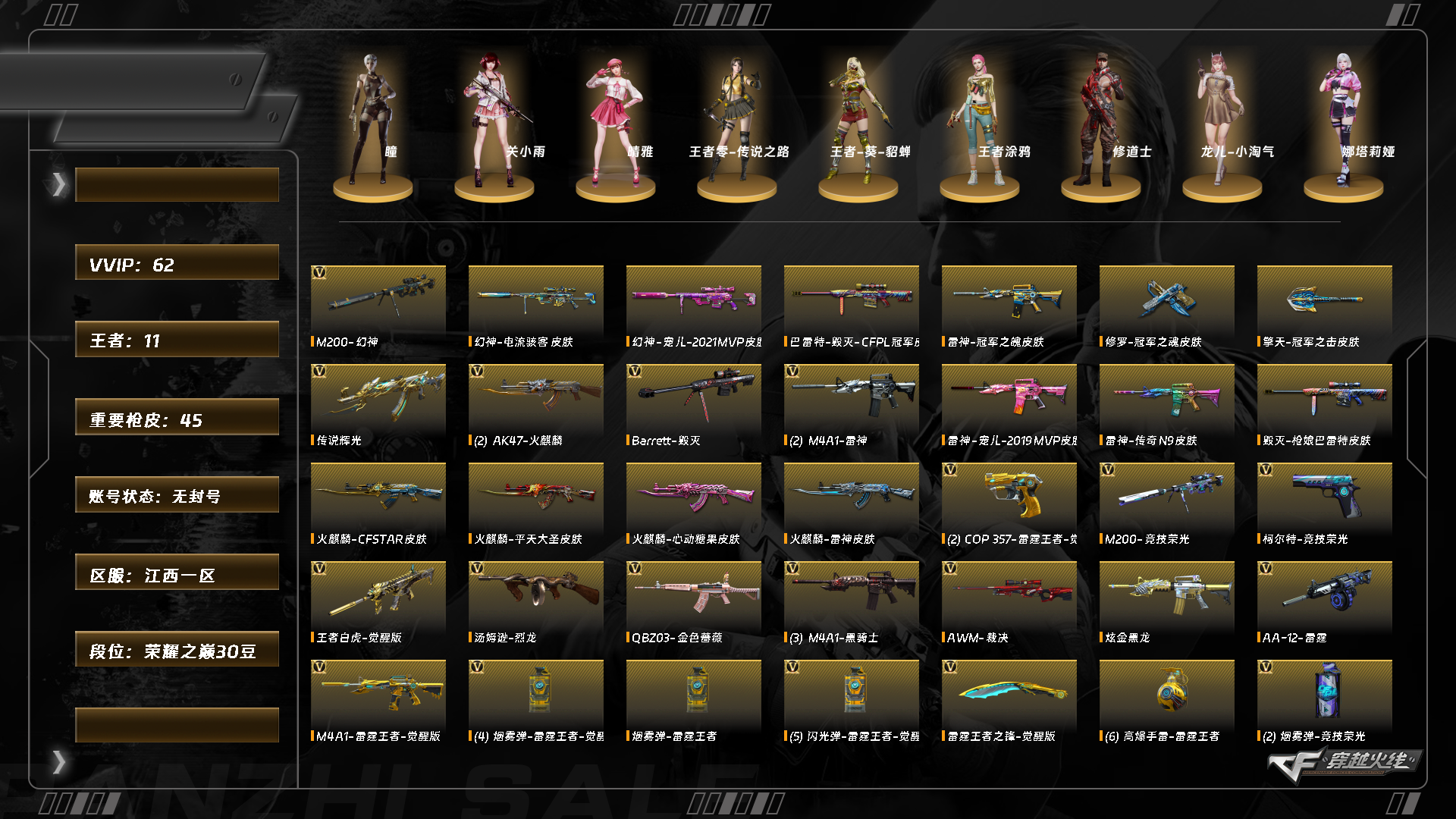 xh9497/南部/江西一区/可排位/【荣耀之巅30豆】【lv.102 荣耀元帅】vip6/61v/传说辉光/【幻神3皮】/幻神/幻神agccfpls24冠军/幻神宠儿/幻神电流骇客/m200竞技荣光/【裁决三件套3皮】/裁决/裁决音效卡/裁决凤灵/裁决流光秘银/裁决百城联赛天津/q金色蔷薇/q