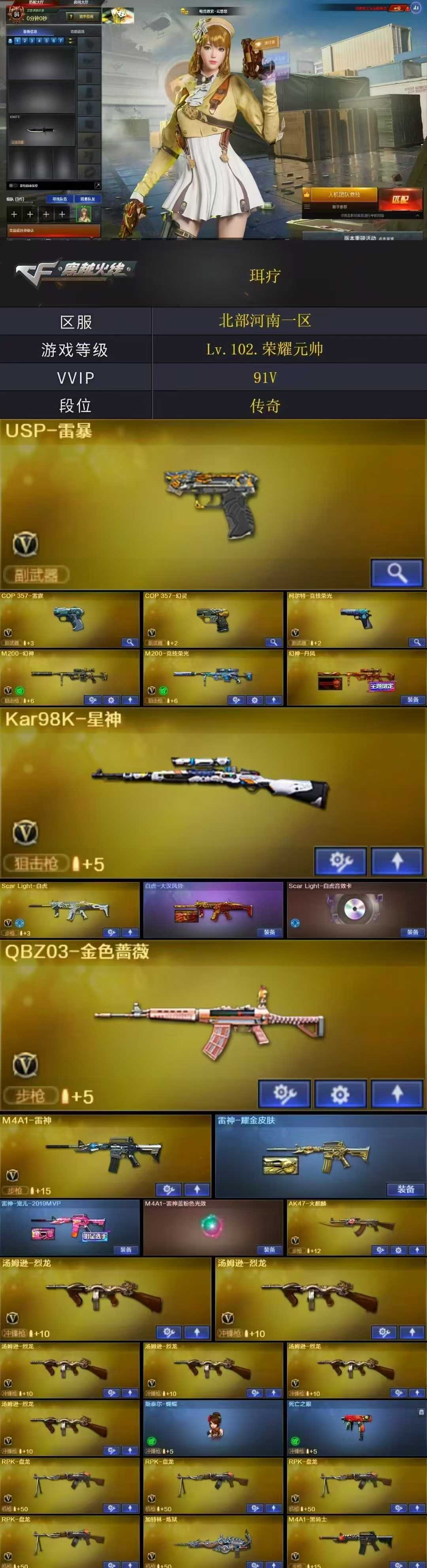 北部战区 编号bbq1271 vip3 可排位 可二次 id珥疗【好看的id】 【⑧个副武器】 【cop 357-雷霆】【usp雷暴】【cop幻灵】【柯尔特竞技荣光】【幻神幻神丹凤皮肤】【m200-竞技荣光】【kar98k-星神】【scar light-白虎】【白虎-大汉风骨】【scar light-白虎音效卡】【q03-金色蔷薇】 生化ys【⑥烈龙蝴蝶斯泰尔】异变清道夫【死亡之眼】【⑤盘龙】 【热门角色】:电竞教官-云悠悠/魅影/蛇隐宗/王者-魅影/王者玲珑-小乔/王者涂鸦/炽天使/灵狐者-职业经理/职业选手/潘多拉 【热门音效卡】:scar light-白虎音效卡/barrett-毁灭音效卡/m4a1-黑骑士音效卡 【热门皮肤】:幻神-丹凤/白虎-大汉风骨/毁灭-bean-2020mvp/雷神-宠儿-2019mvp/屠龙-荣耀之锋/毁灭-荣耀之怒