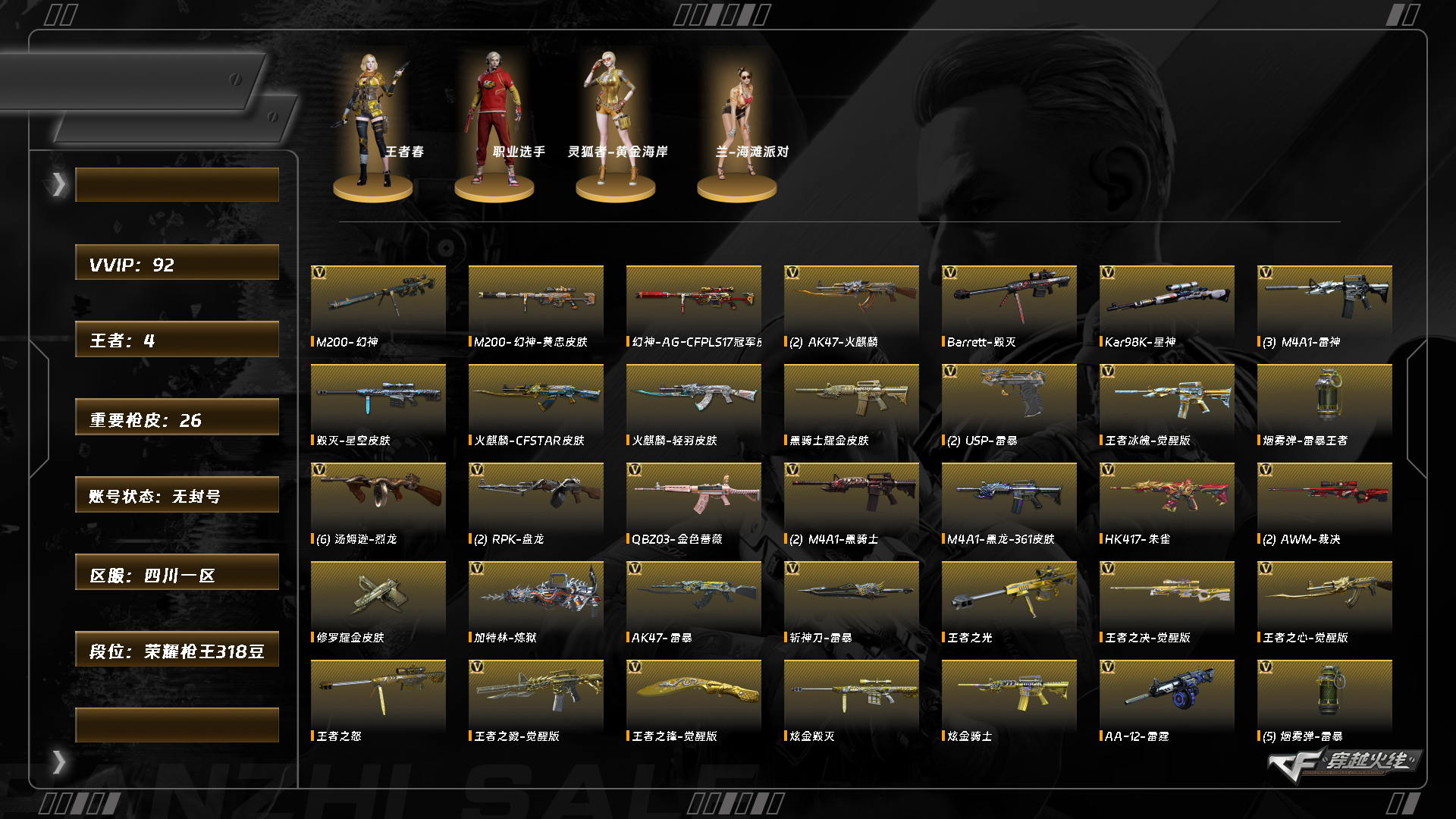 abc11130/西部/四川一区/钱包注销/可排位/可二次/掌火:/91v/幻神/幻神ag17冠军/幻神电竞之星/裁决/星神/6烈龙/斯泰尔蝴蝶/雷暴套/usp雷暴/青龙/朱雀/q金色蔷薇/朱雀电竞之星/天龙/毁灭/黑骑士/雷神/火麒麟/黑龙/【四防已开】/王者春/【音效卡】/