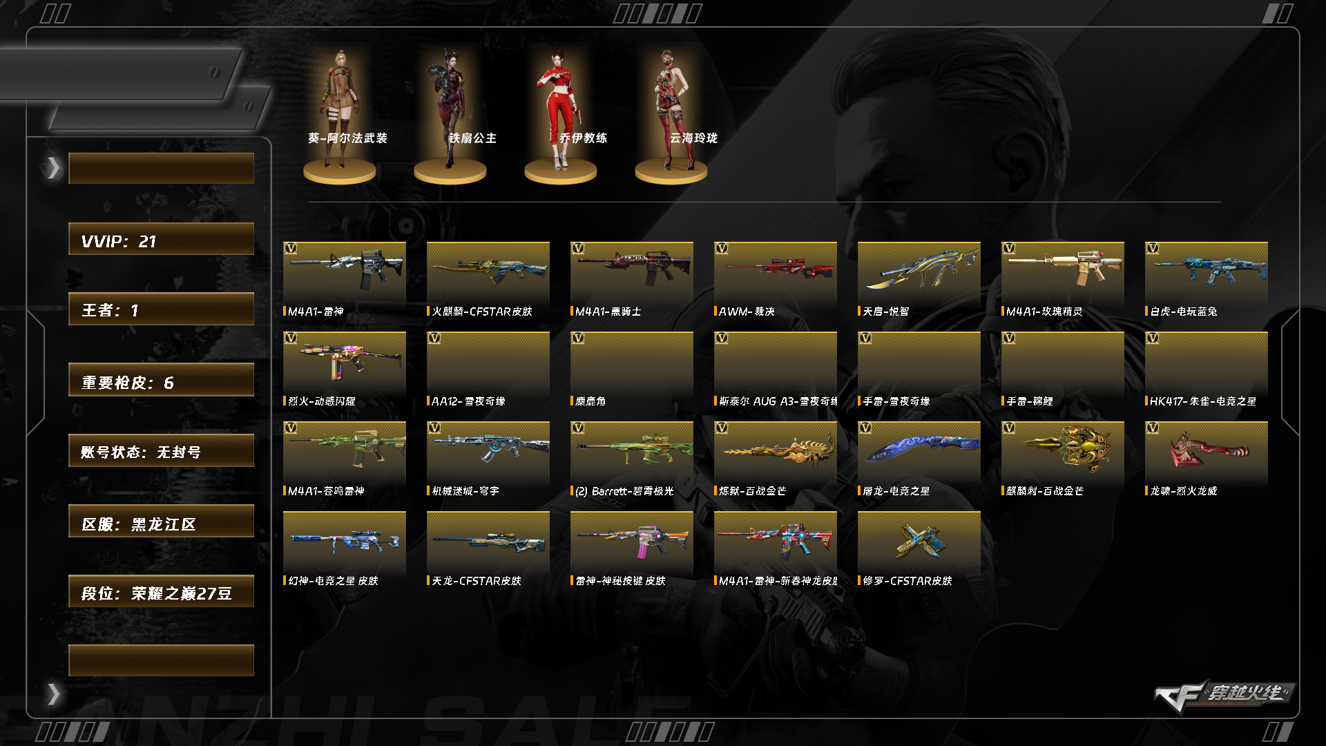 5200/北部/黑龙江区/可排位/【61000点卷】【挑战九阶段全满】【荣耀之巅27豆】【lv.100 元帅】vip3/21v/朱雀电竞之星/白虎电玩蓝兔/裁决/雷神/黑骑士/【音效卡】炼狱百战金芒庆典舞曲音效卡/【呛皮】【无幻神】幻神电竞之星/雷神神秘按键/雷神新春神龙/【角色】铁扇公主/乔伊